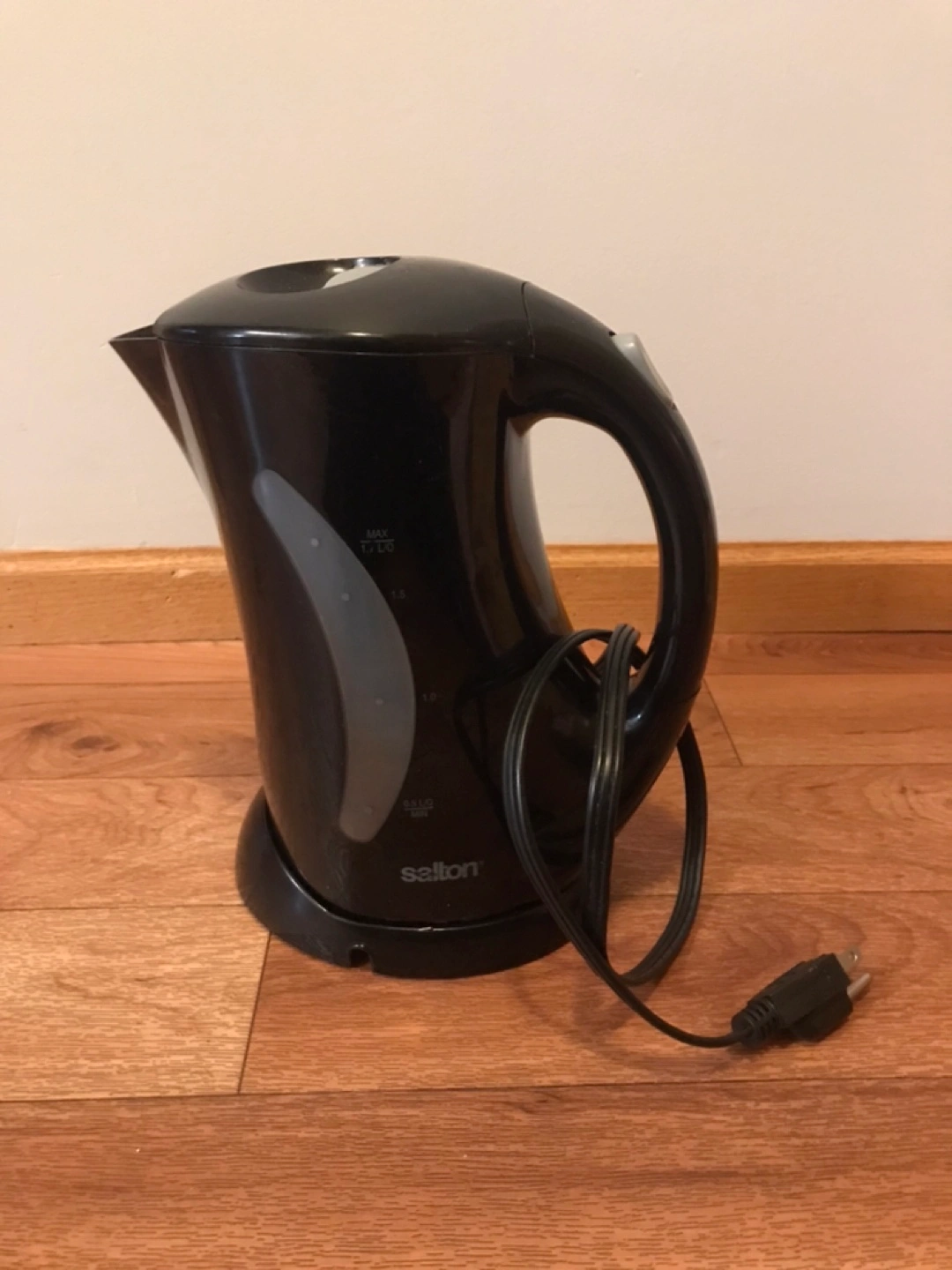 121Selling a Salton electric kettle in black! It's in great condition and ready to boil water quickly and efficiently for your tea or coffee No holds FCFS x posted Cash and pickup only