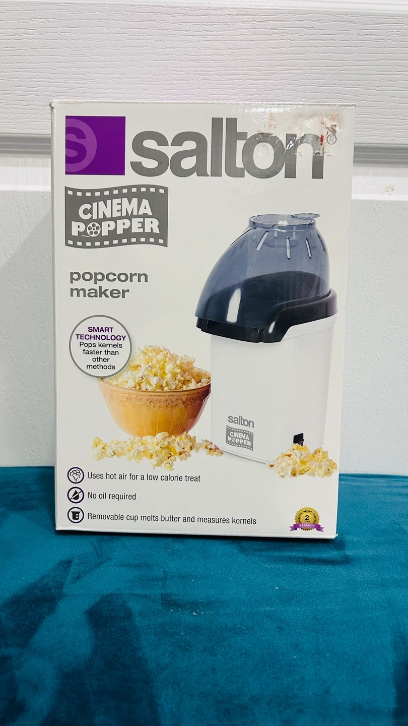 65Get ready for movie night with this Salton Cinema Popper popcorn maker! It uses hot air for a low calorie treat and requires no oil. It also has a removable cup that melts butter and measures kernels. Enjoy fresh popcorn in minutes!