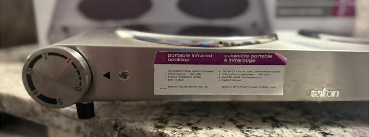 Stainless steel, 1800 W double-burner cooktop with precise temperature control and 7.4β³ (18.8 cm) burners. Used in a classroom setting; works well but has some residue/discolouration on the burner plates from past use. Clean overall and includes original box and manual. π° $45 π Pickup near Dufferin & Wilson (by Yorkdale Mall) | Cash only