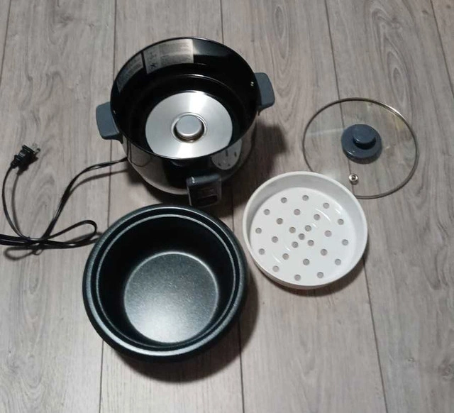 This is a great steamer for small portions! It is in used condition but works perfectly for steaming vegetables or rice. It comes with a steaming basket and a glass lid to monitor your food as it cooks. Additional features include: * Compact size * Easy to clean * Multiple uses for steaming and cooking