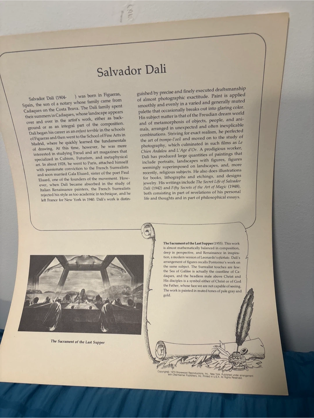 Selling a print of Salvador Dali's "The Sacrament of the Last Supper" artwork. It's a really interesting piece! Approx. 14” x 11”
