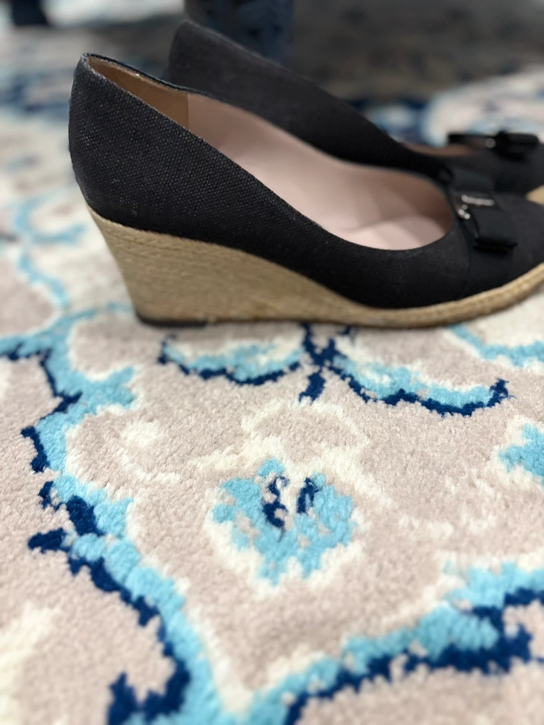 15These Salvatore Ferragamo espadrille wedges are a stylish addition to any wardrobe! They feature a sleek black design with the iconic Ferragamo bow. The size is US 9. Asking $400, pickup in Vaughan