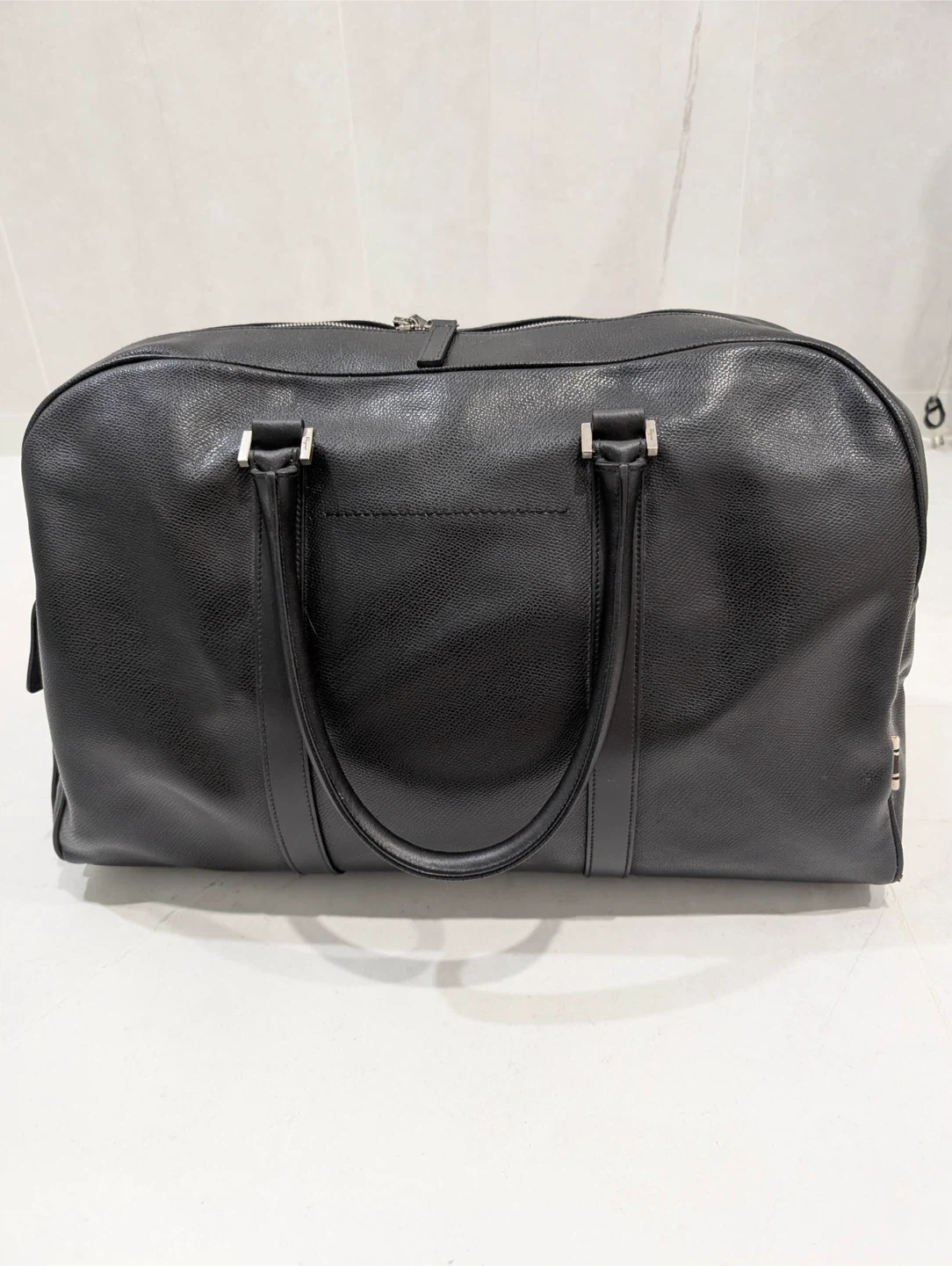 This is a Salvatore Ferragamo black leather duffle bag! It's in great condition and perfect for travel or the gym. The bag features a zipper closure and sturdy handles. The interior is spacious and ready for your essentials