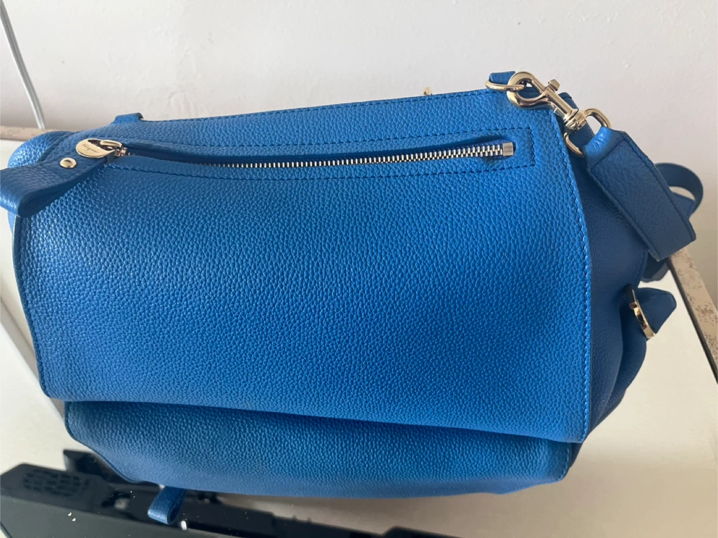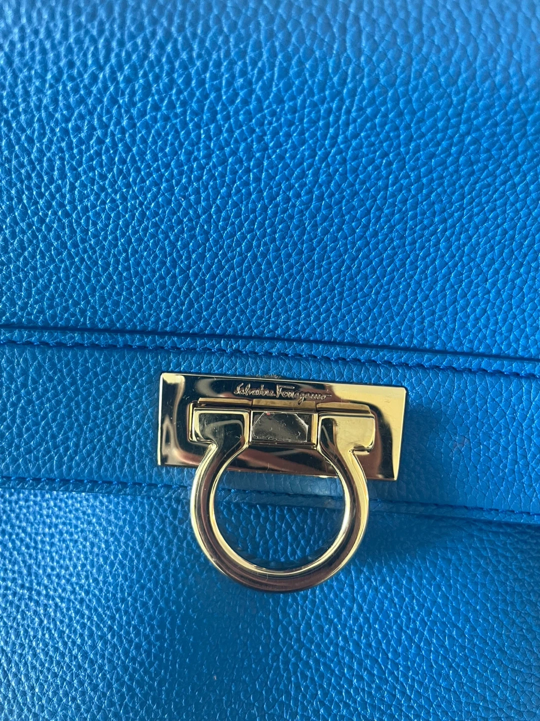 67Selling a beautiful Salvatore Ferragamo handbag in a vibrant blue leather! It's in great condition and ready for a new home. The bag features gold-tone hardware and a unique design. Perfect for adding a pop of colour to any outfit
