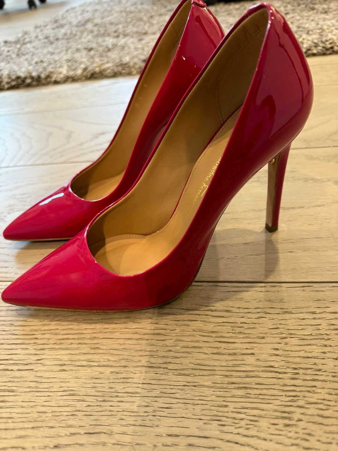 20Stunning fuchsia patent leather heels. Size 8 1/2. Made in Italy. Pointed toe. High heels.