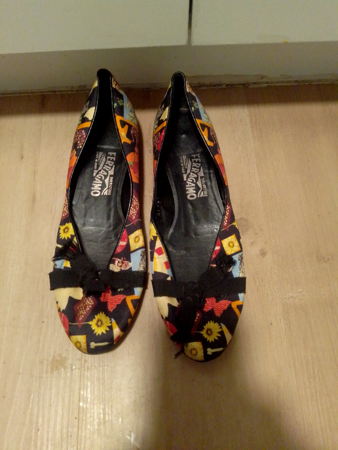10These Salvatore Ferragamo ballet flats feature a unique and colourful print. They have a cute bow detail and are in good condition. Perfect for adding a pop of colour to your outfit!m