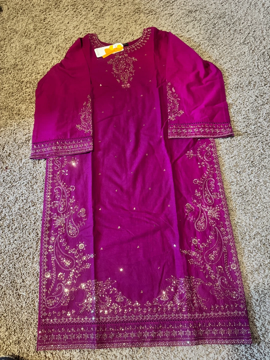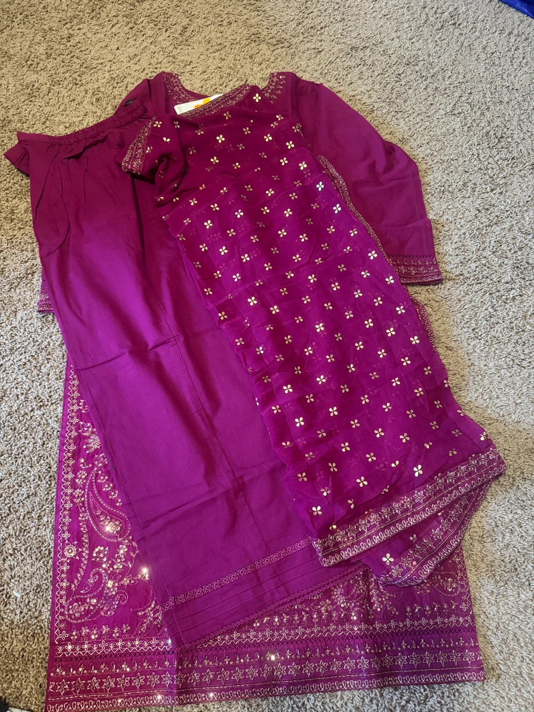 Selling a salwar kameez suit! It's in brand new condition and features beautiful embroidery. Perfect for a special occasion or everyday wear. U can try it before buying. Prices are different for every suit, starting from $35 to $100.