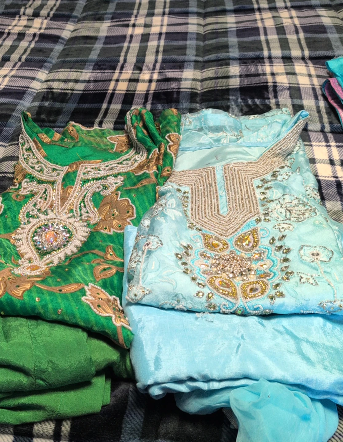 87Two beautiful Salwar Kameez suits available! One is a vibrant green and the other is a lovely light blue. Both are in great condition and ready for a new home 40dollar for both