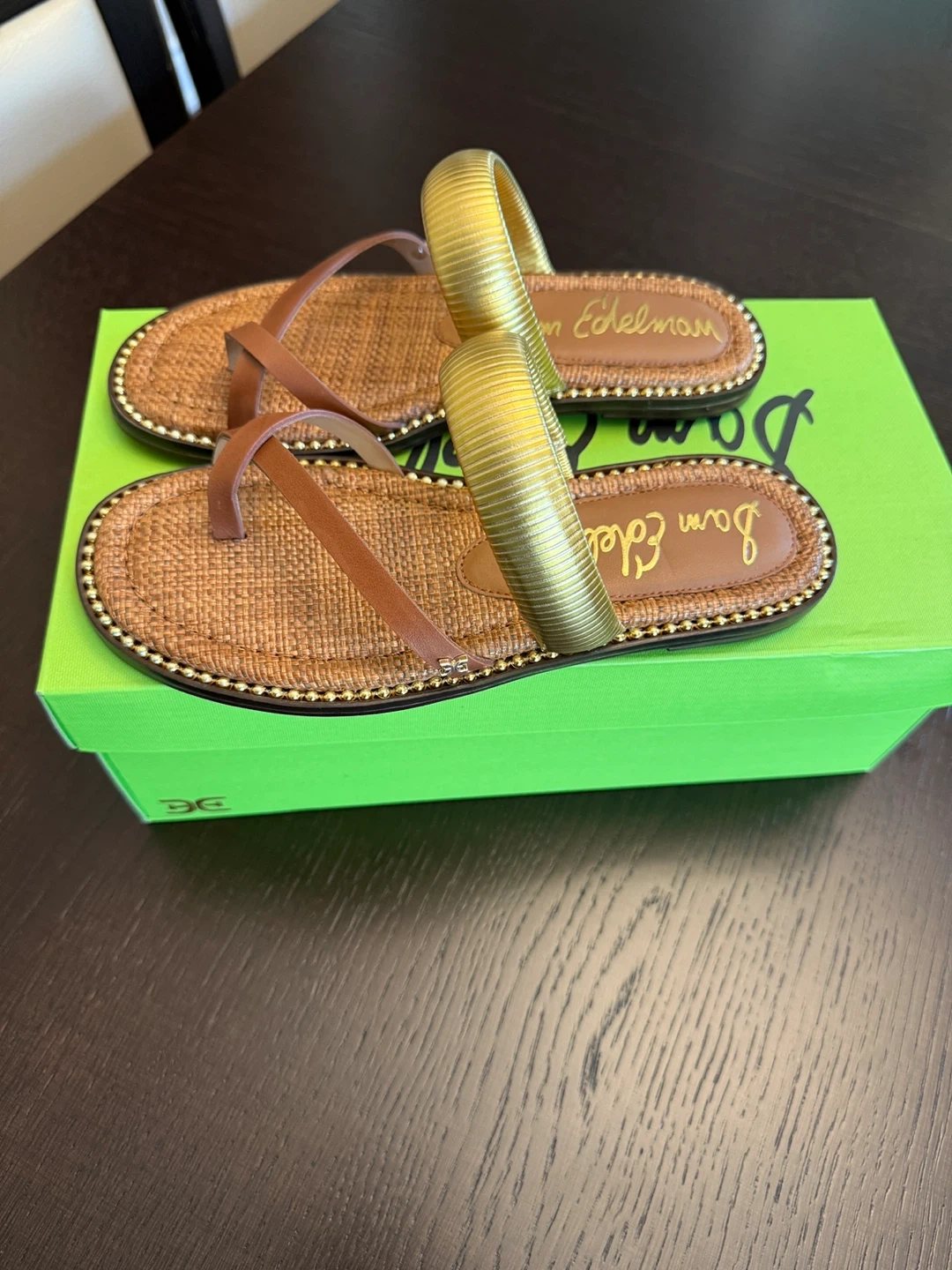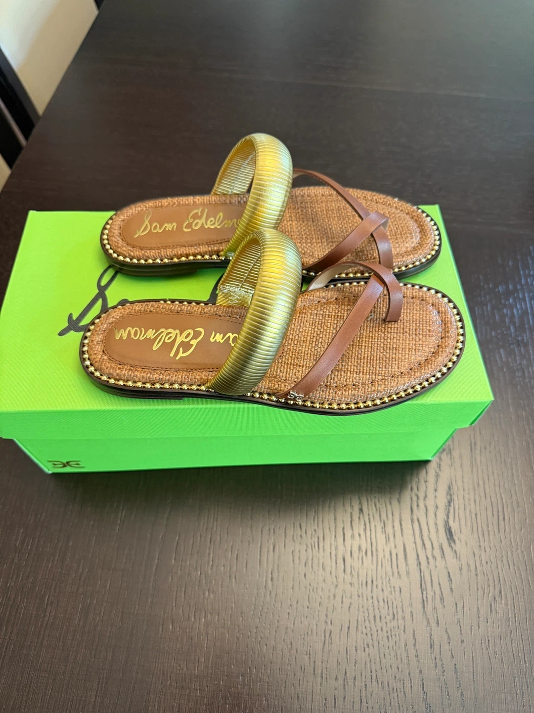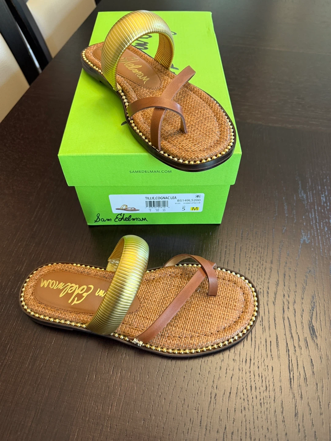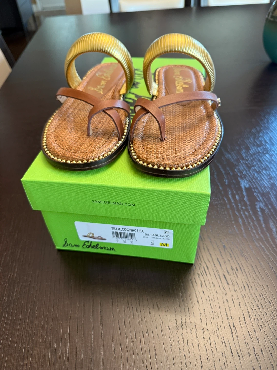 60Selling a pair of Sam Edelman Tillie sandals in size 5. They are in cognac leather and come with the original box. These stylish sandals are perfect for adding a touch of elegance to any outfit!
