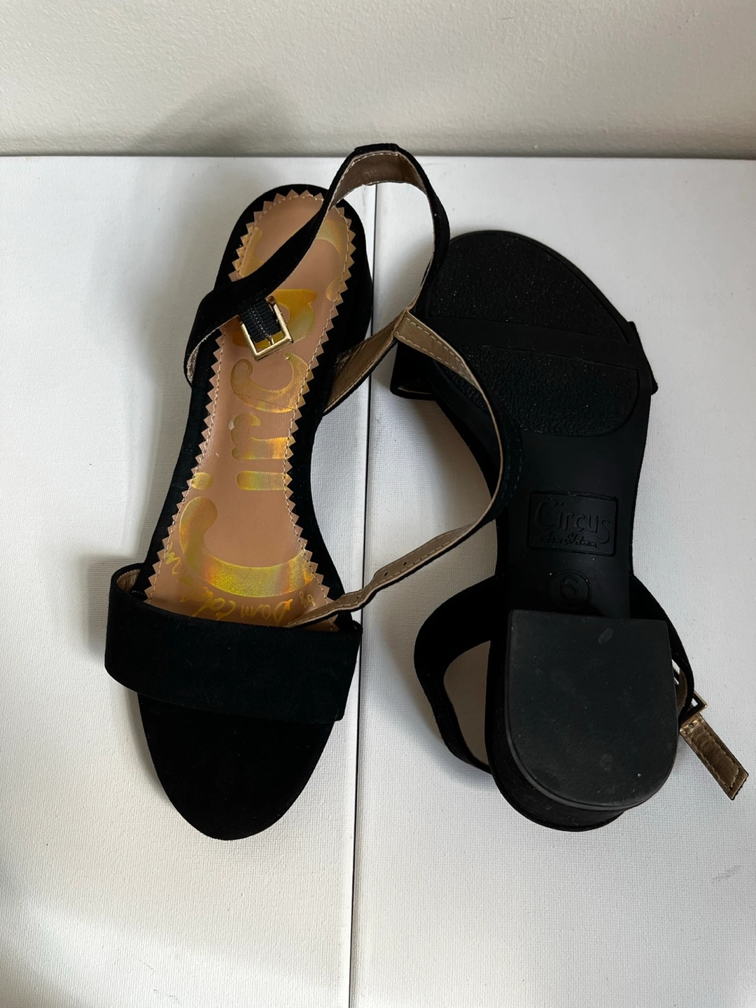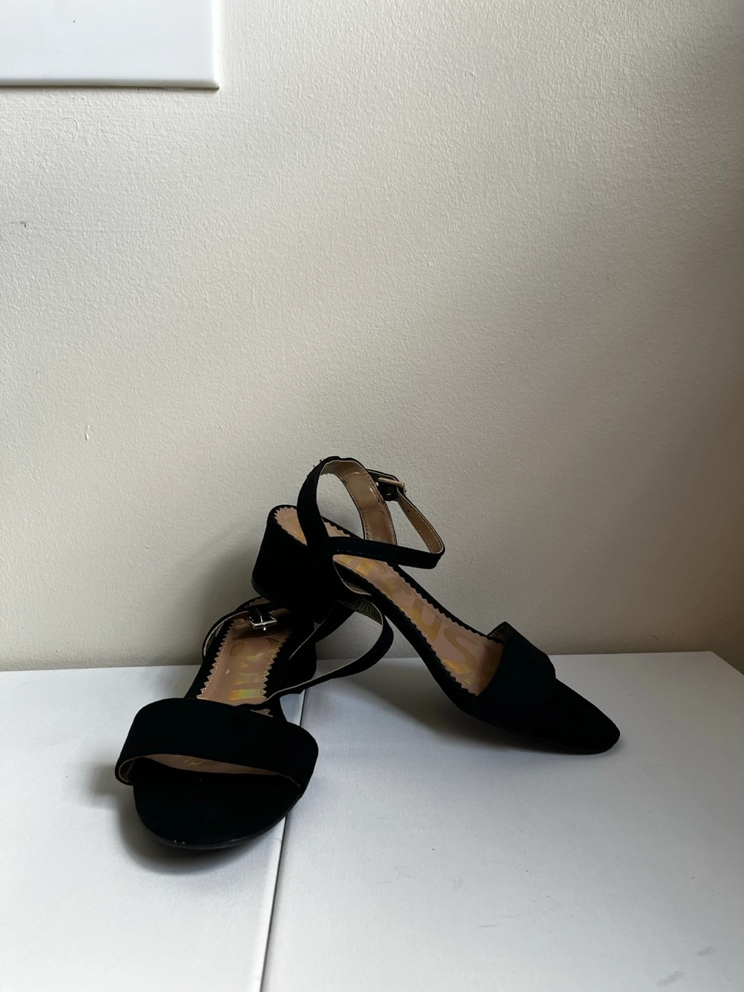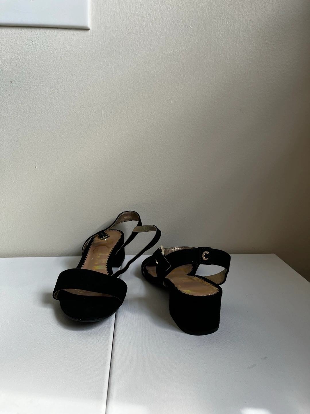 Black suede sandals. Block heel. Ankle strap. True to its size. Size 5.5