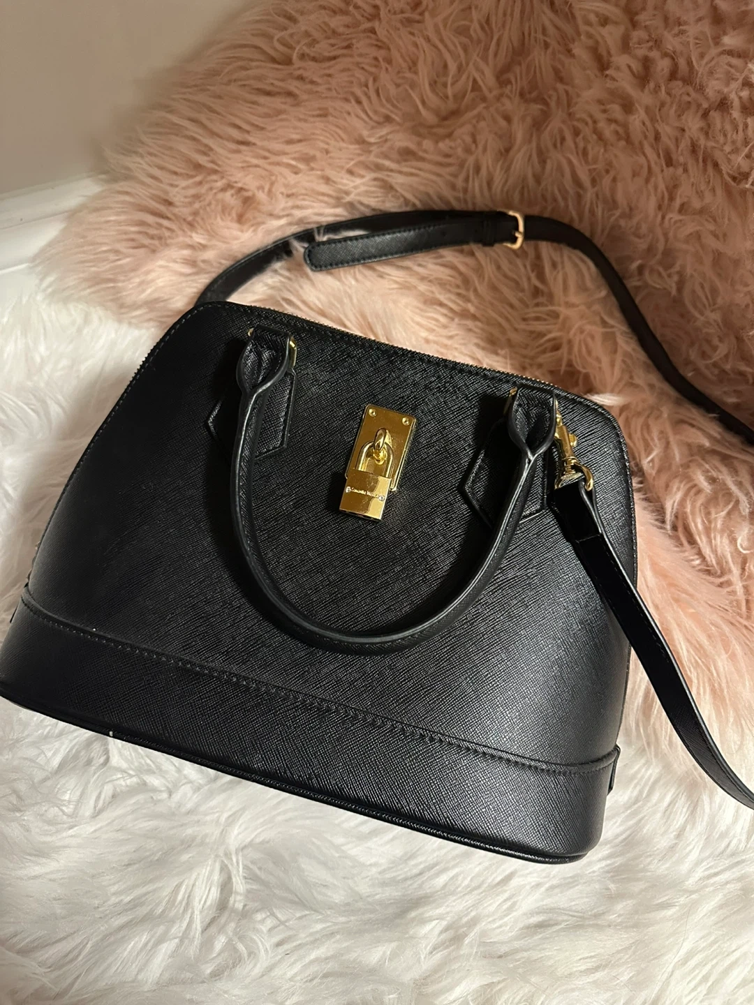 Selling a Samantha Thavasa black dome satchel. It's in great condition and perfect for everyday use! The bag features gold-tone hardware and a detachable shoulder strap.
