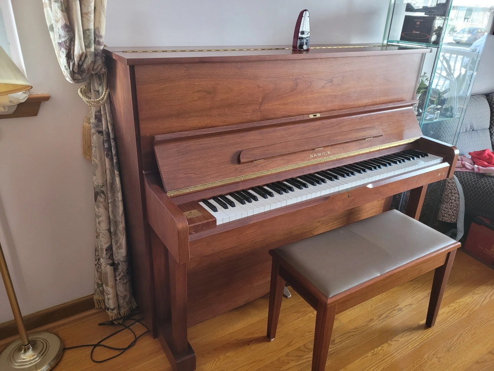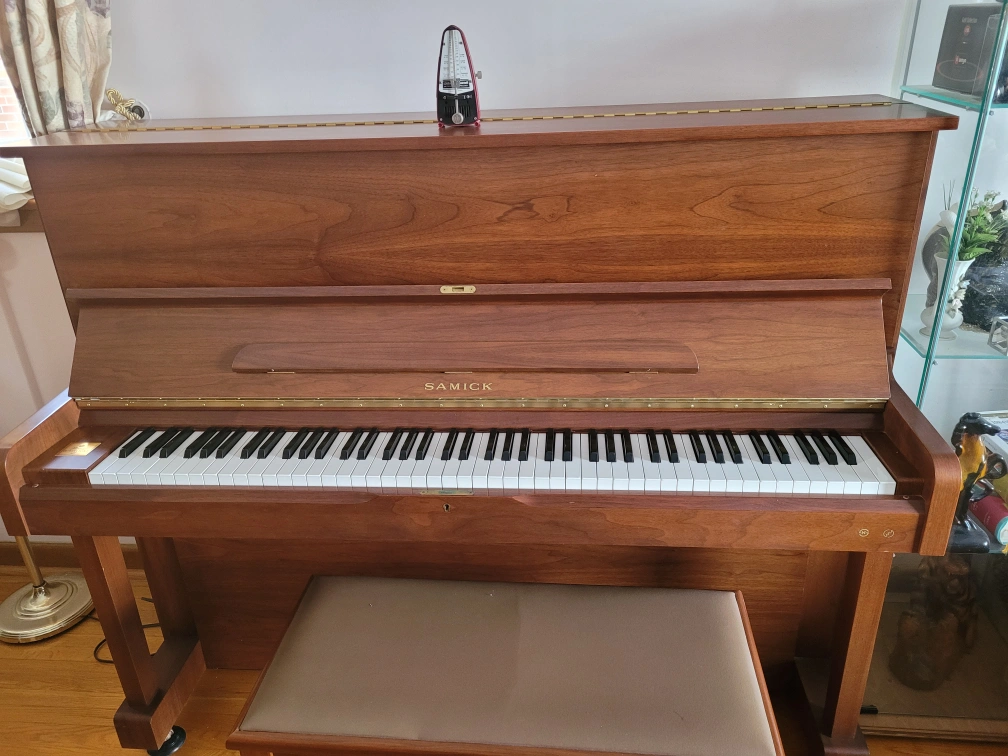 21Beautiful wooden upright piano. Includes matching bench. Great for beginners or experienced players. Amazing condition Pick up only