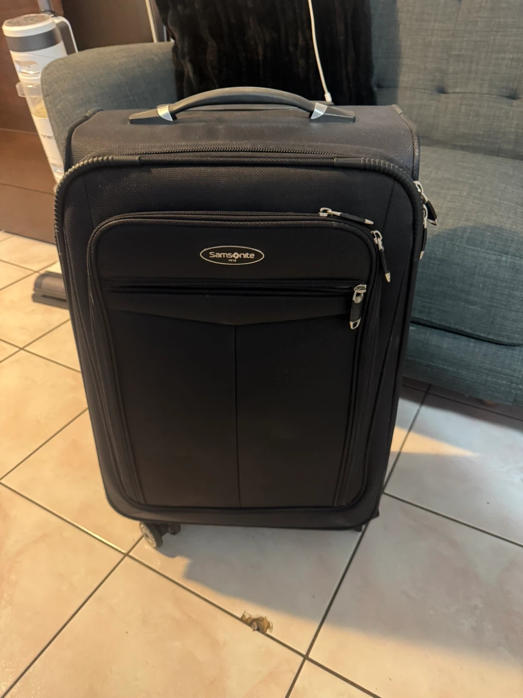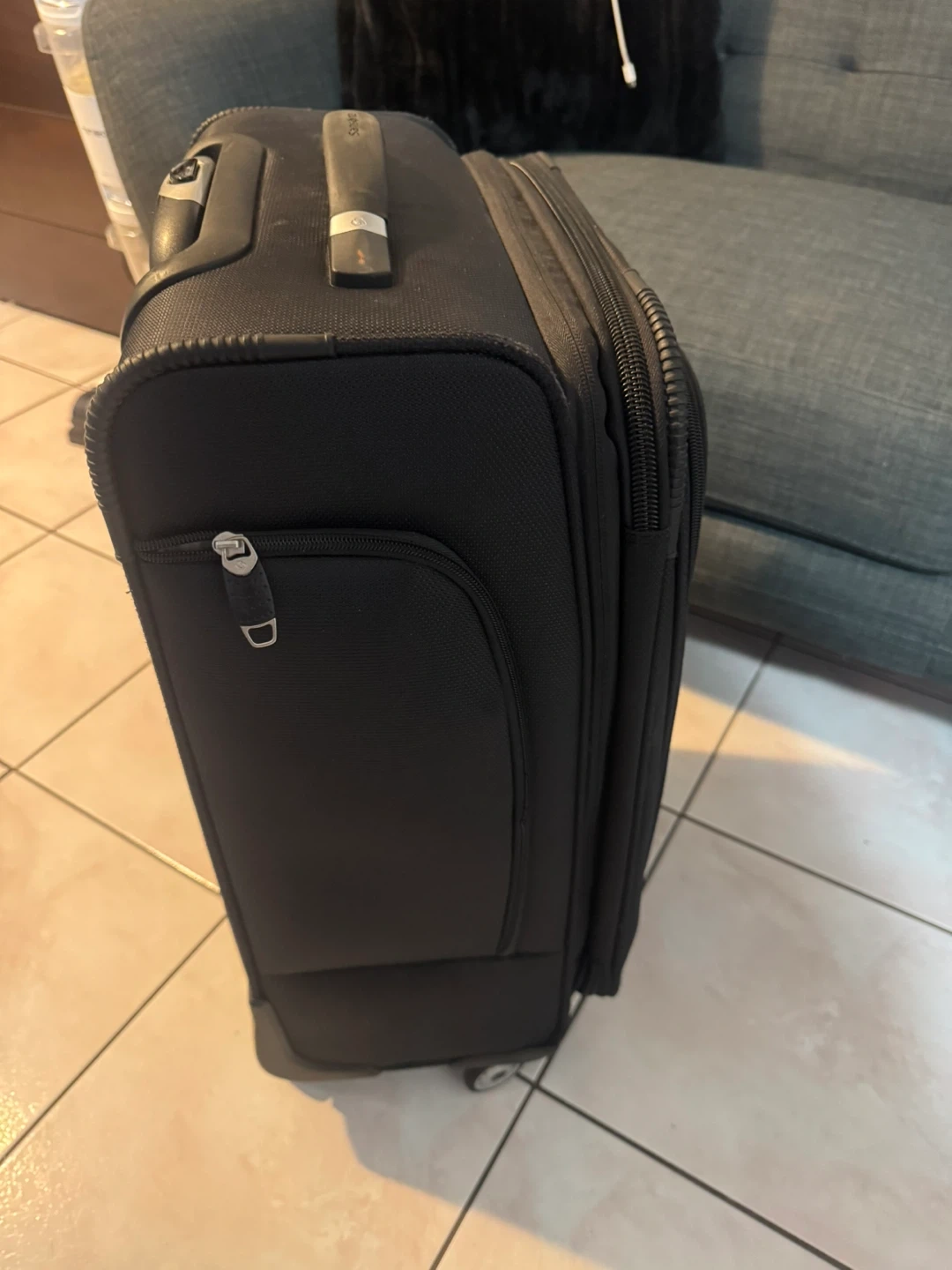 Selling a black Samsonite carry-on suitcase. It's in great condition.