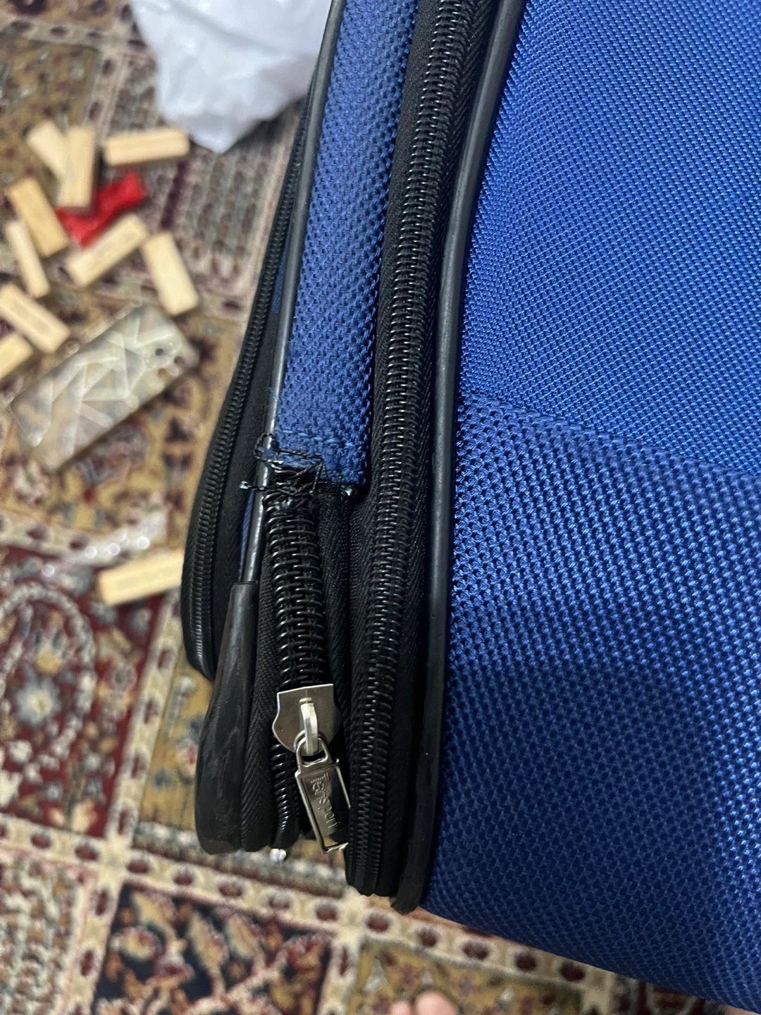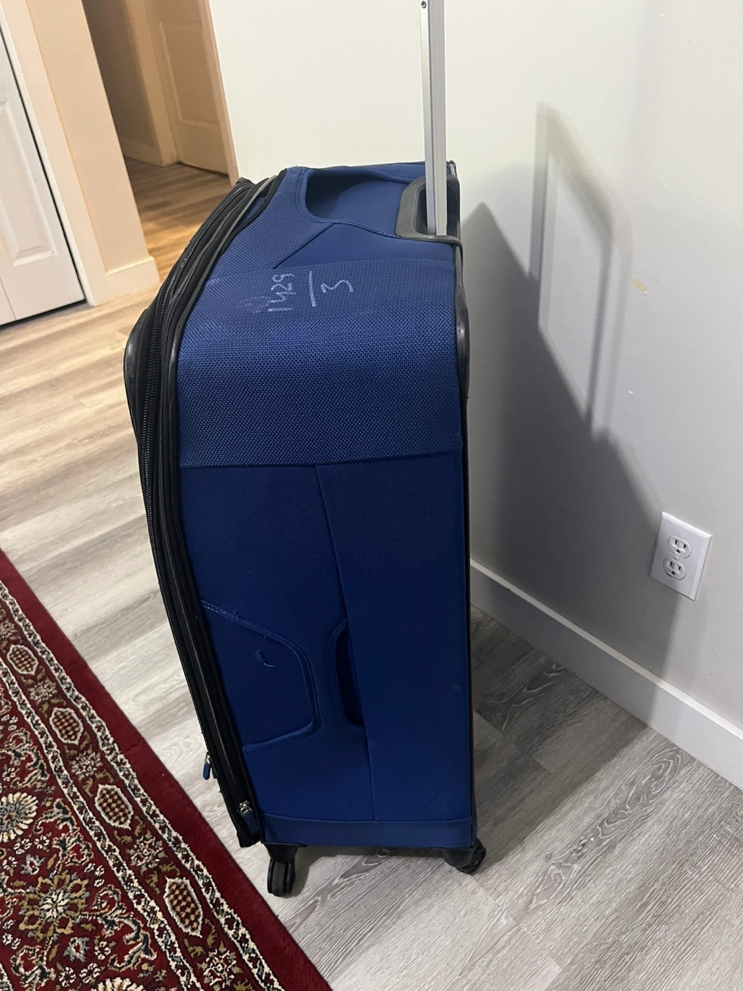 Selling a blue Samsonite suitcase. It has some wear and tear on the zipper, but otherwise it's in good condition. Great for travel!