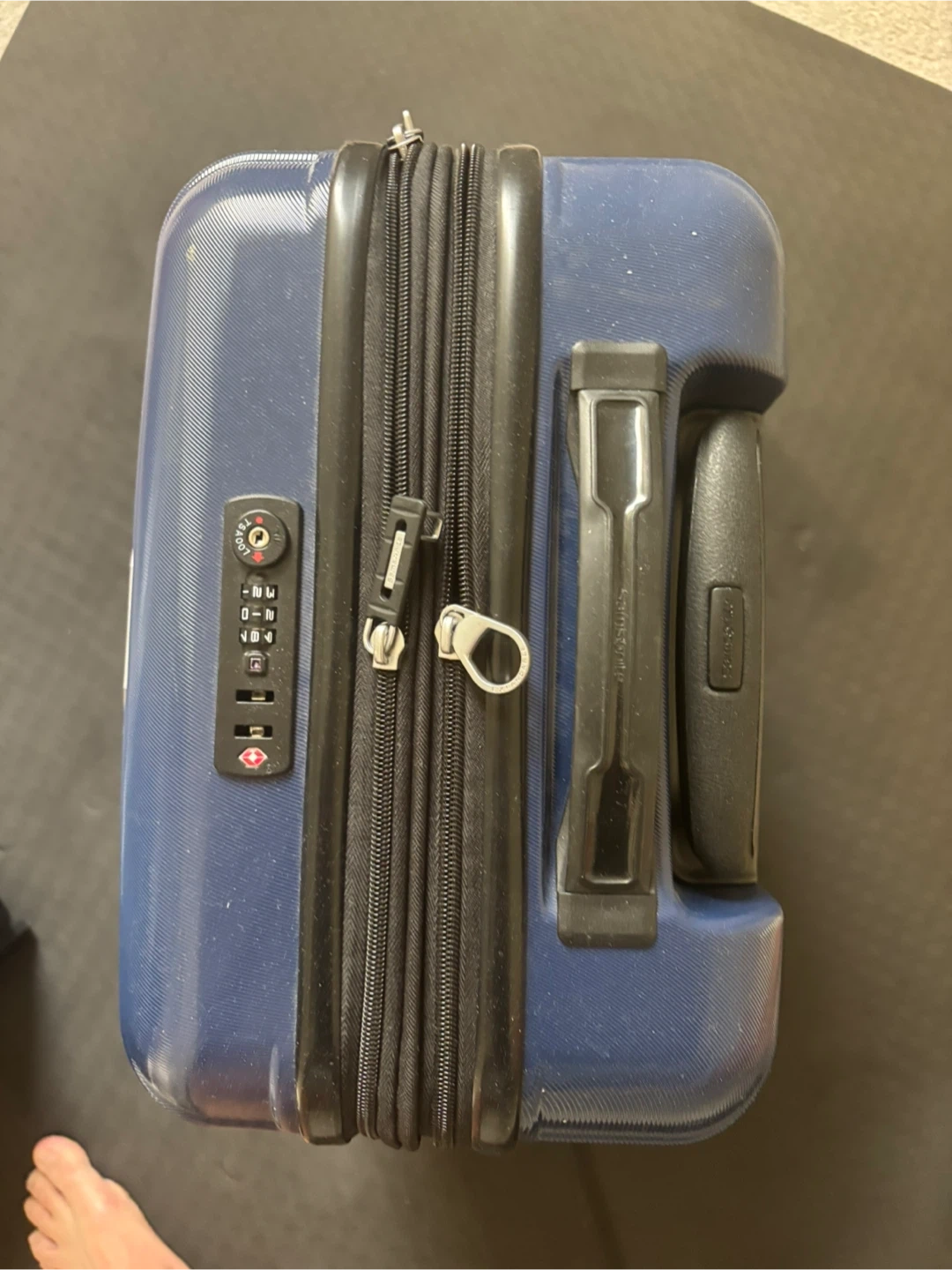 10Selling a Samsonite carry-on suitcase in blue! It's in great condition and perfect for your next trip. Features a combination lock for added security and smooth-rolling wheels for easy maneuvering