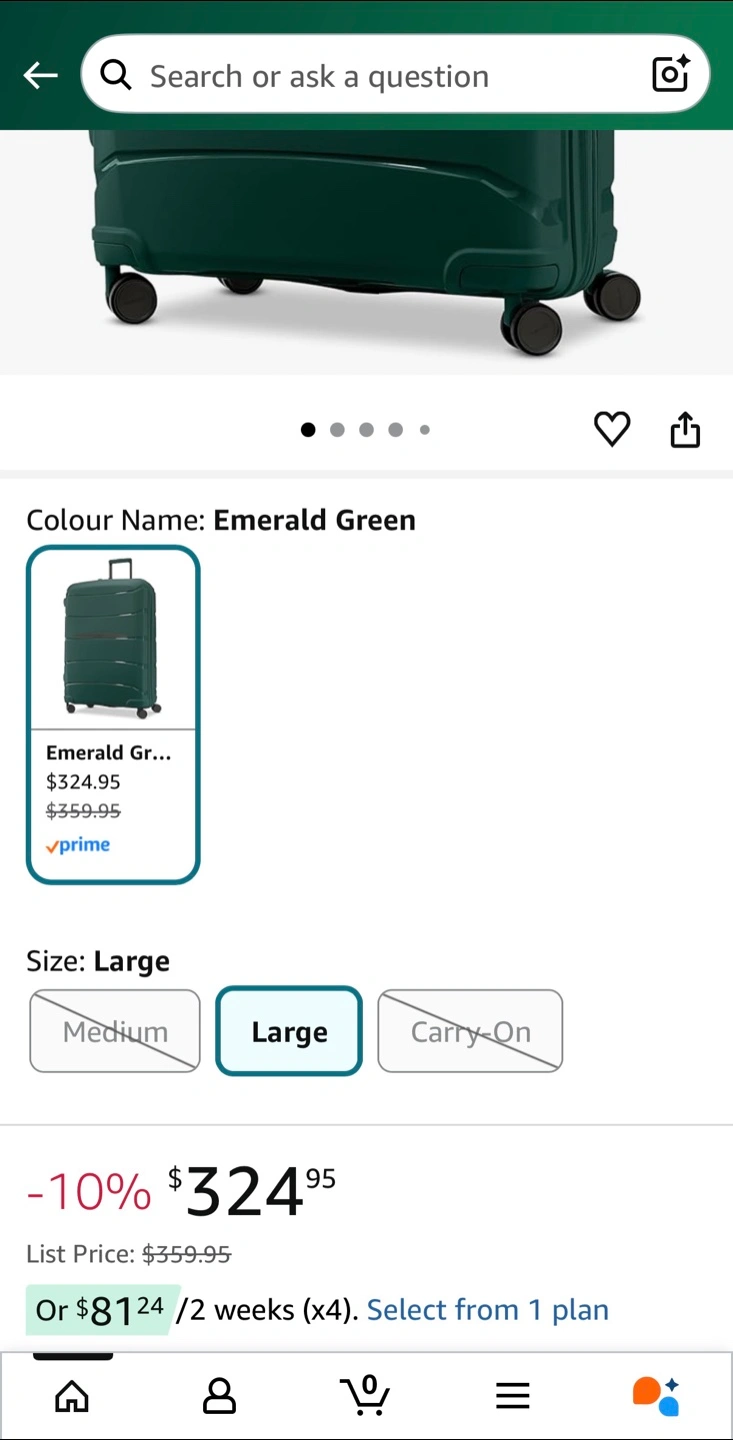 10Looking to sell my Samsonite Outline Pro Spinner in a large size and beautiful emerald green colour! This suitcase is in brand new and ready for your next adventure. Currently selling at amazon at $329.00. I won it in a contest and don’t need it.