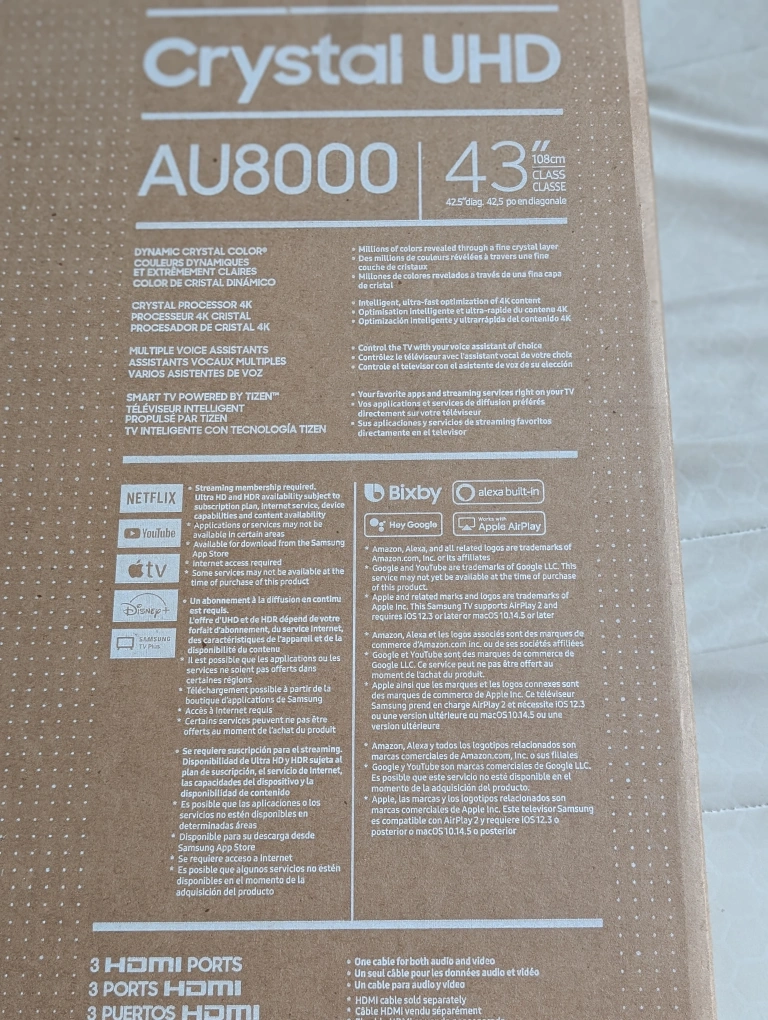 6543 inch TV with Crystal Processor 4K, 3 HDMI ports, and Smart TV powered by Tizen
