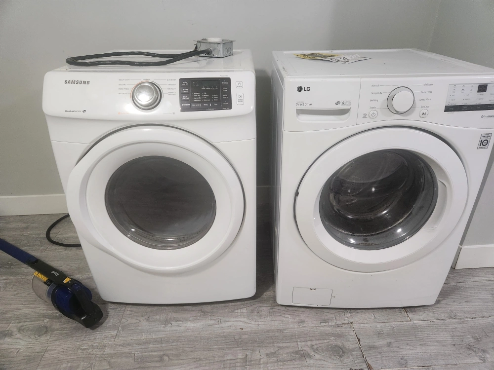 10Used Samsung electric dryer and LG front-load washer. Both white. Sold as a set or alone
