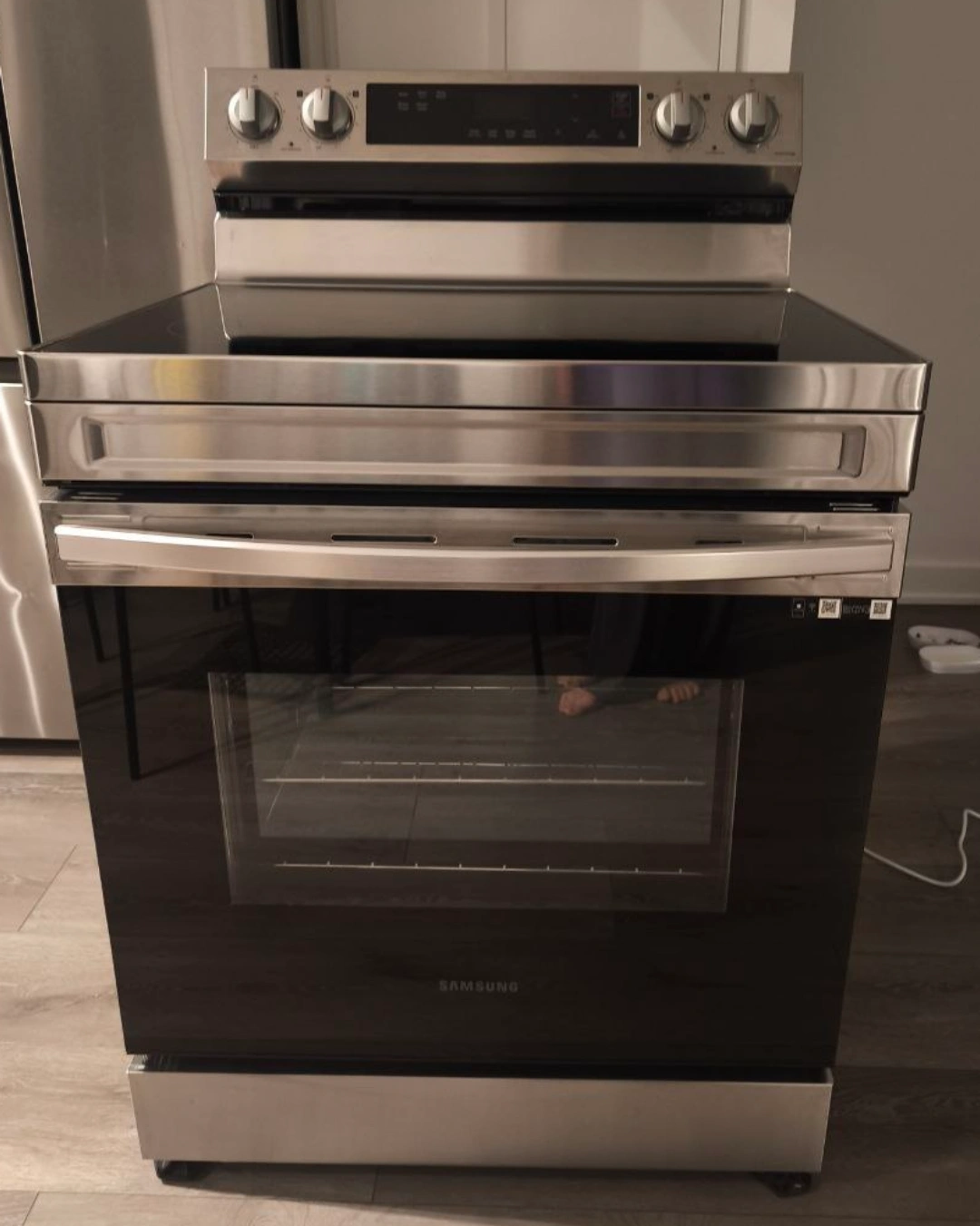 Selling a Samsung electric range oven. It's in great condition and ready for a new home! Features a sleek design and efficient cooking capabilities. Perfect for any kitchen! Clean and polished Samsung electric ceramic stove. ✅ All burners work perfectly ✅ Oven has never been used — like new inside ✅ Recently deep-cleaned and polished ✅ Looks and works great Ready to plug in. There is a small dent on the top that doesn’t affect the stove’s functionality. Delivery available for an axtra fee.