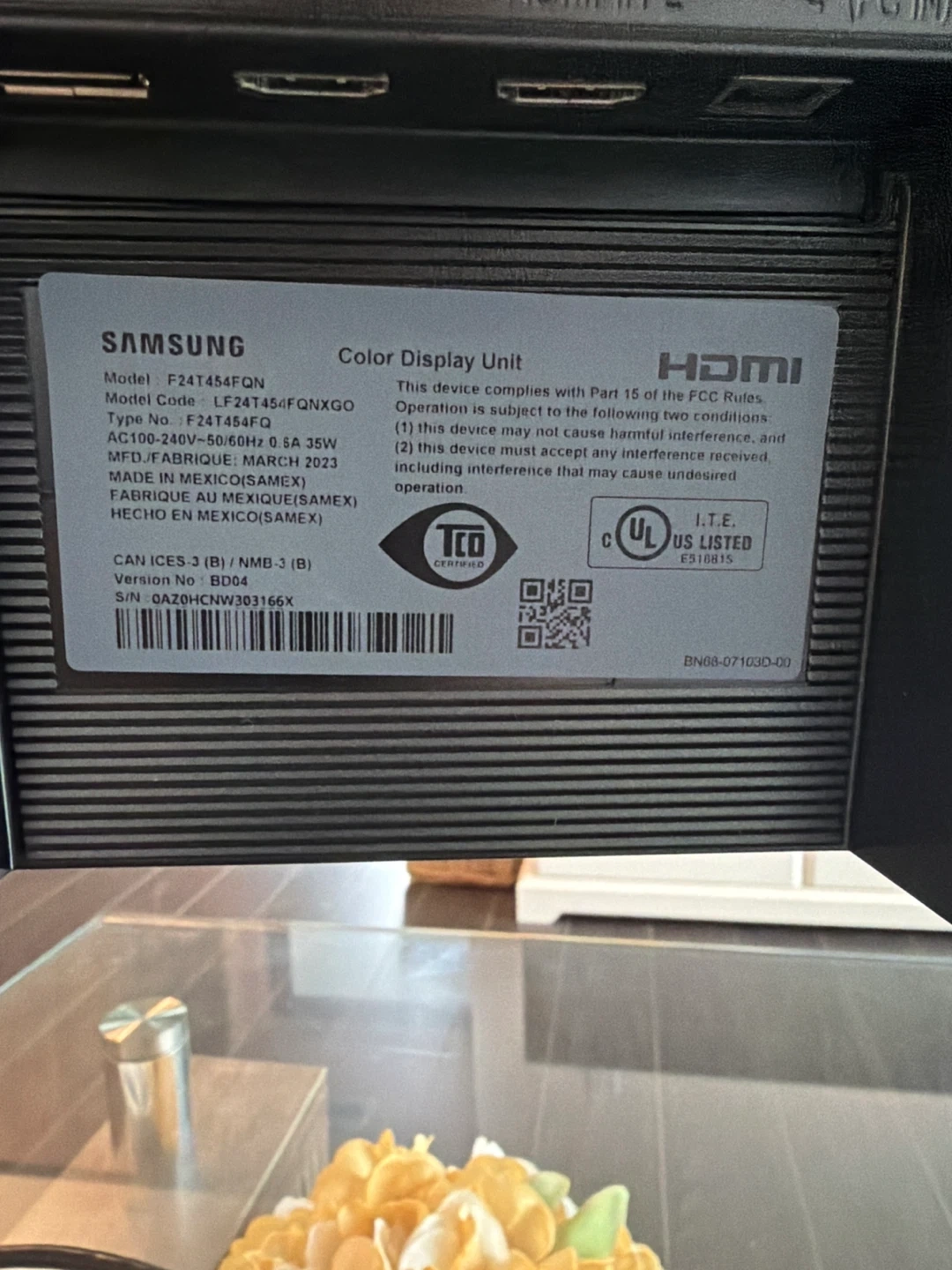 62Selling a Samsung 24-inch monitor. Model: F24T454FQN Manufactured in March 2023 It's in great shape and ready for a new home! Never used - no box