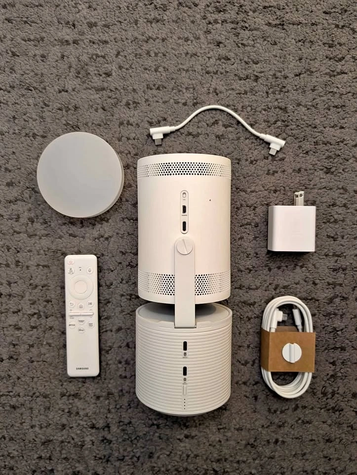 Includes: The Freestyle 2nd Gen Smart FHD Portable LED Projector x1 The Freestyle Battery Base x1 Remote Control x1 Projector Lens Cover x1 Charger x1 Charging cable x1 Battery Base to Projector cable x1
