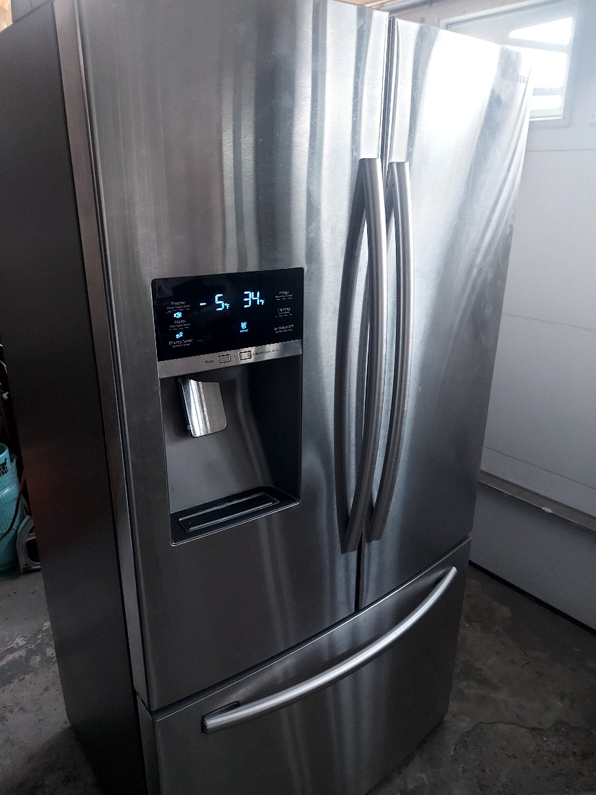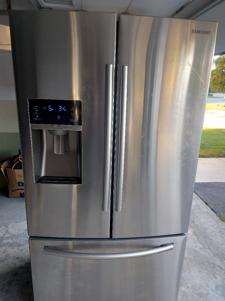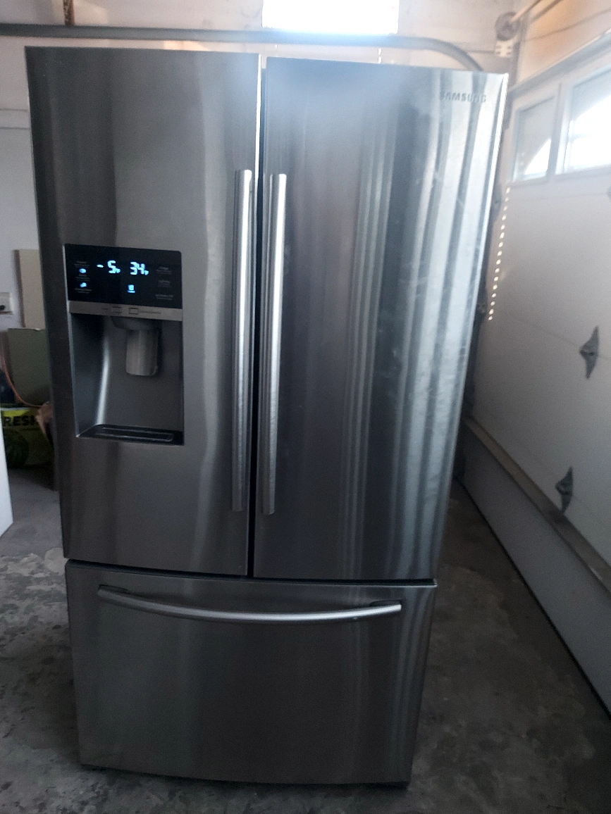 Selling a Samsung French door refrigerator in stainless steel. It's in excellent working condition and has plenty of space inside. just refurbished with new thermostat sensors and evaporator fan motor.