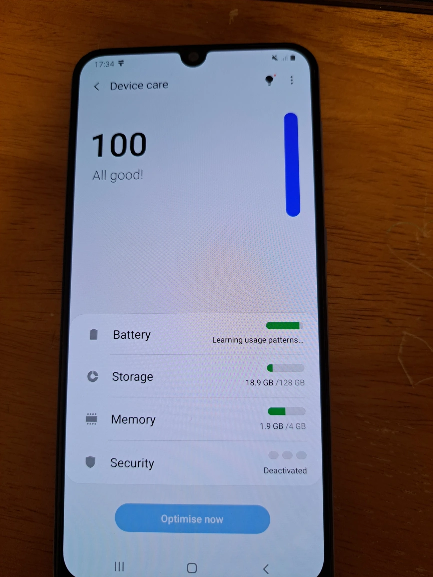 Selling a Samsung Galaxy A50 in great condition! It has 128GB of storage, perfect for all your photos and apps. The battery health is excellent, showing 100% in device care. Feel free to reach out if you're interested!