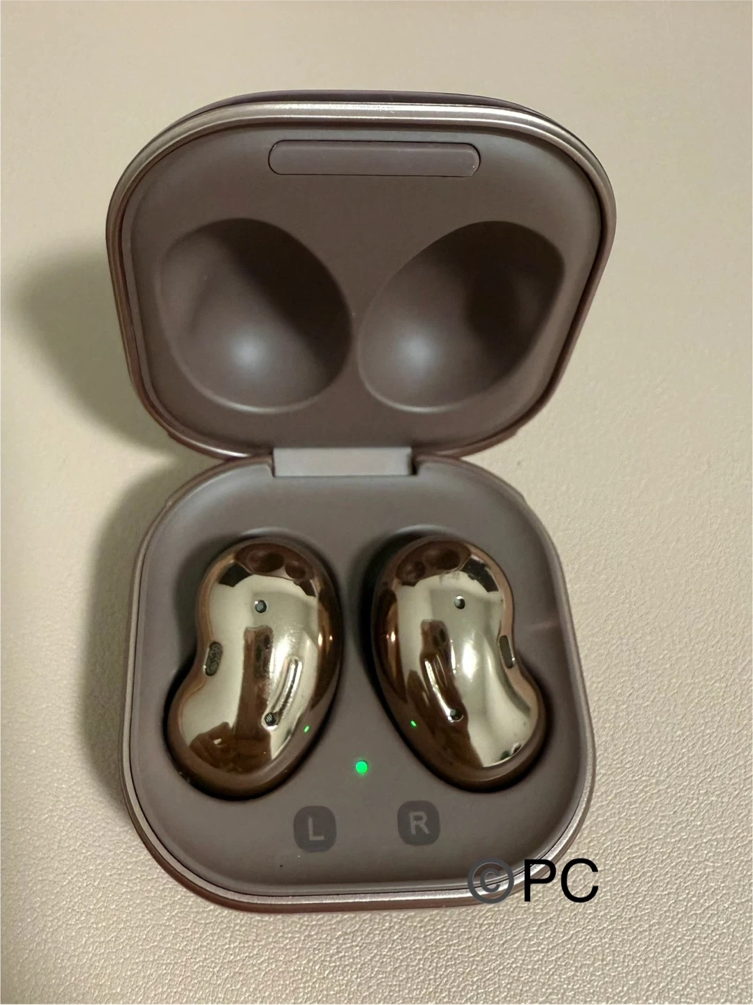 Selling a pair of Samsung Galaxy Buds Live in a beautiful rose gold colour! These earbuds feature active noise cancelling, equalizer settings, and touch controls for easy use. Does not come with cord and box. But the case and buds is well taken care of!