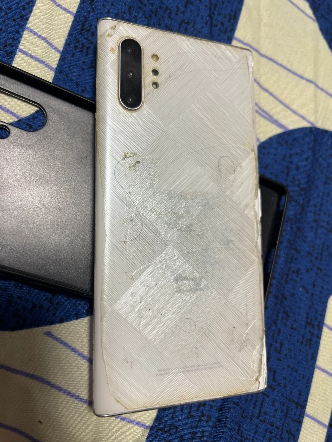 10Selling a used Samsung Galaxy Note 10+. It shows signs of wear and tear, as seen in the photos. The phone still functions, but the back panel is cracked . Comes with a case.
