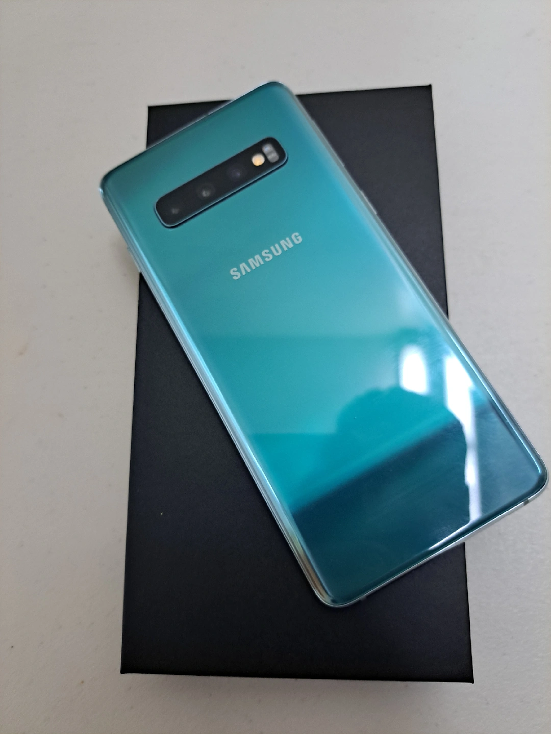 Selling a Samsung Galaxy S10+ in Prism Green with 128GB of storage. It's in great condition and comes with the original box! The phone has a vibrant display and a versatile camera system. Perfect for everyday use! call or text - 437-452-6542