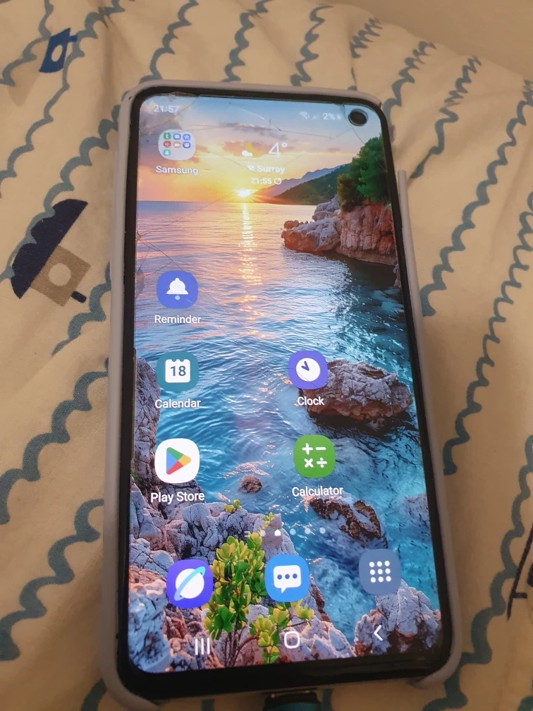 65Selling a Samsung Galaxy S10e in a lovely light blue colour. It's in okay condition and ready for a new home