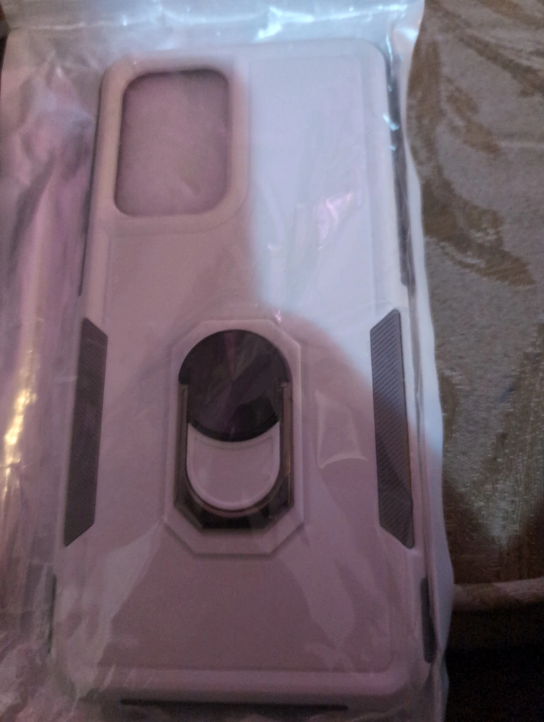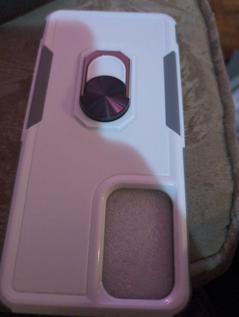 139Protective phone case, white with grey accents. Features a built-in ring holder. Suitable for Samsung Galaxy S22 Ultra. New, unused.