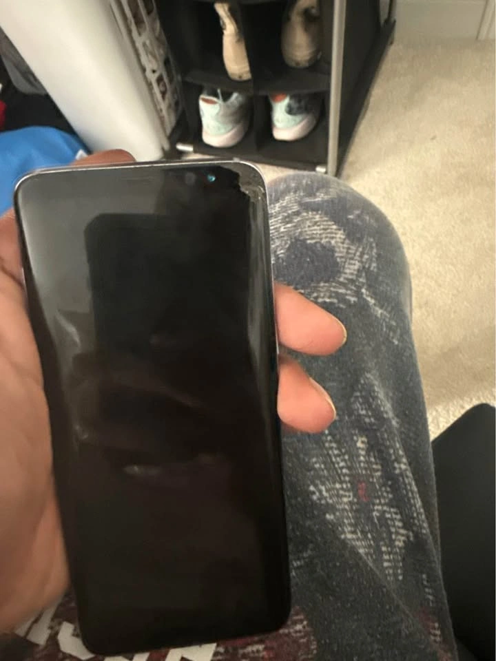 10Front display has a crack on the right top as shown. No other problems, works perfectly, fingerprint sensor and cameras work perfectly.