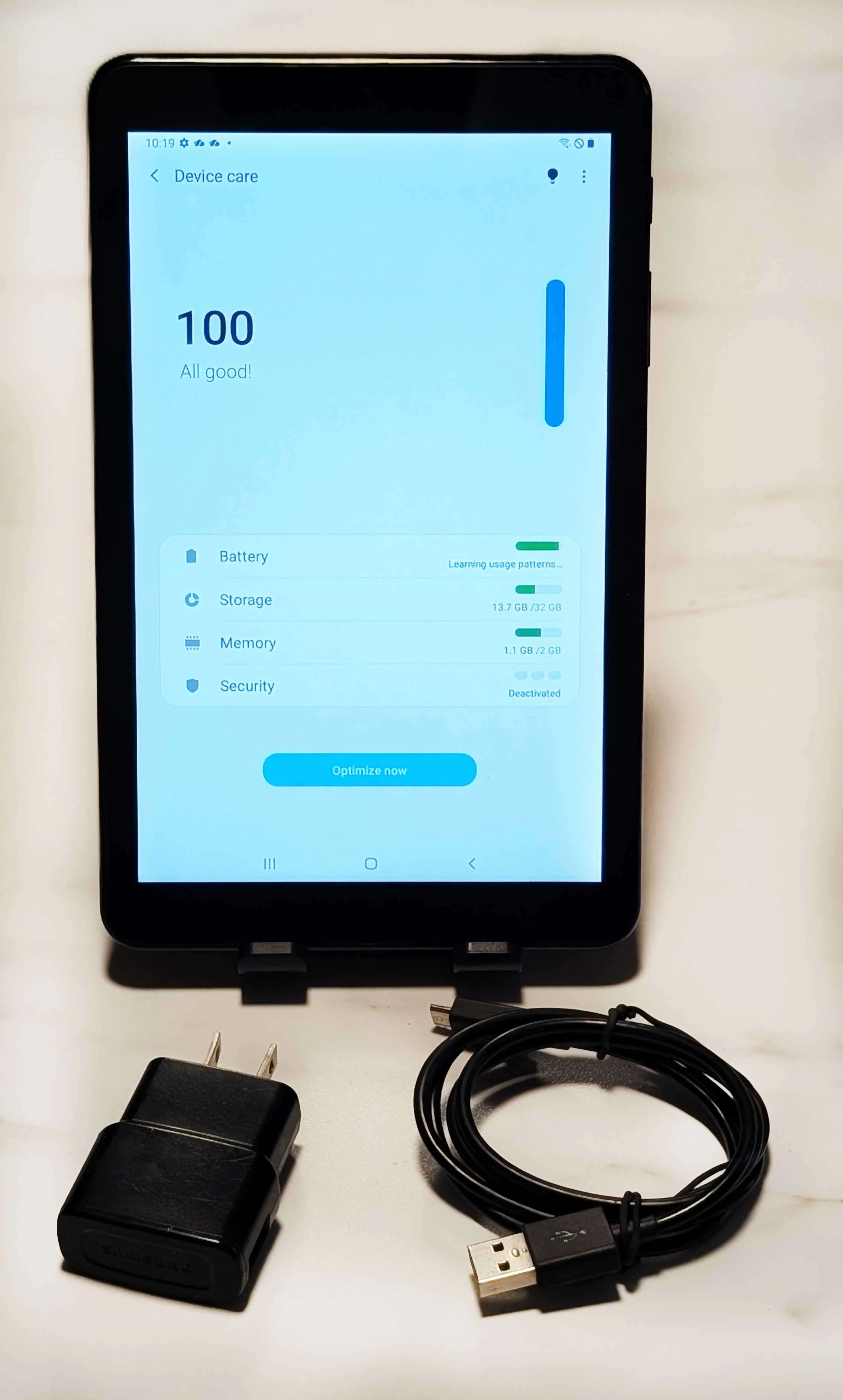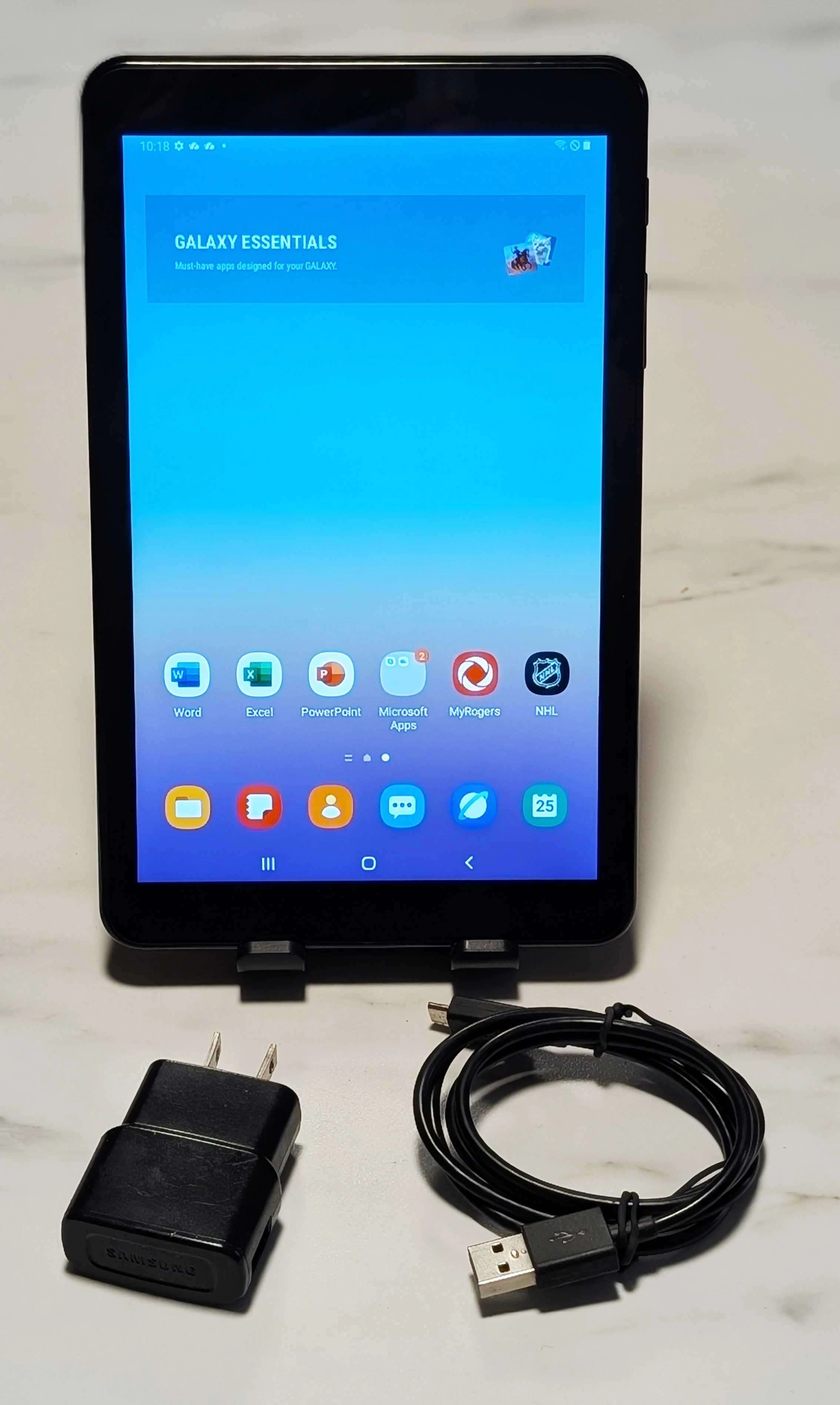 116If you are seeing this Ad, then this item is still available This sale is for 1 gently used, Samsung Galaxy Tab A A SM-T387W LTE 8" - 32GB Tablet with Cable and Charger All components have been cleaned and thoroughly tested. It is in near perfect condition and looks almost new! There are no marks or scratches on the front or back of this beautiful unit. This Galaxy Tab has already been factory reset and updated with the latest software update (Android 9 Pie) available for the Galaxy Tab A SM-T387W. Specifications: • Display: 8-inch, 1280 x 800 resolution • Processor: Quad-Core CPU, 1.4GHz • RAM: 2GB • Storage: 32GB internal storage, expandable via microSD (up to 400GB) • Camera: 5.0 MP rear camera, 2.0 MP front camera • Network: 3G and 4G supported, USB 2.0, Bluetooth v4.2 • Battery: 5000 mAh with 16:10 aspect ratio for immersive viewing. Pick-up in Pickering ONLY This item comes from a smoke-free home.