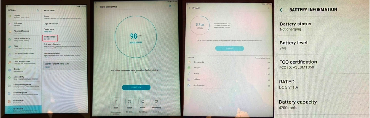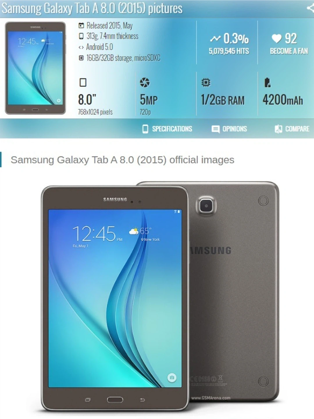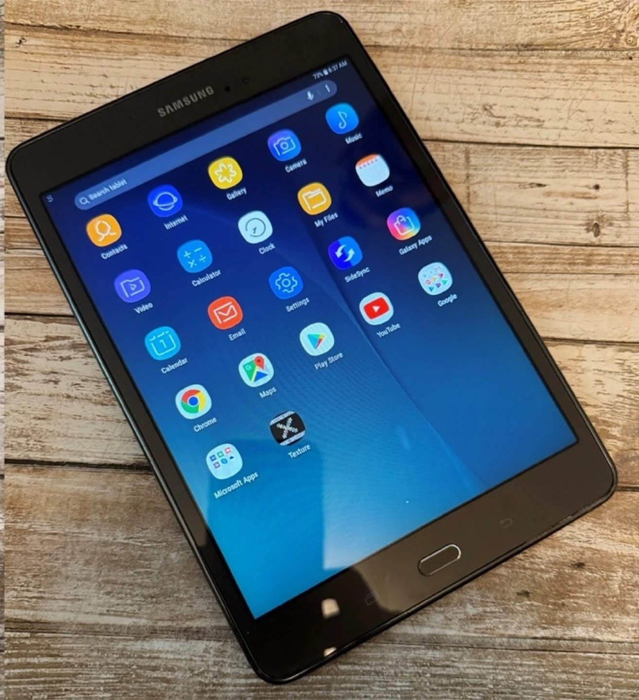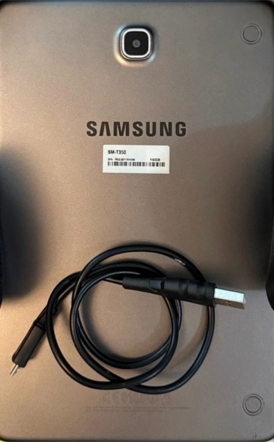 Samsung Galaxy Tab A8.0 (16Gb) - Like New Condition - Samsung Galaxy Tablet Model-SM-T350; Serial # R52JB11XHBM; Colour-Smoky Titanium Internal Memory-16Gb; RAM-1.5GB; Processor-Quad Core 1.2GHz; OS-Anroid-5.0 (Lollipop) Display-8"; Dedicated Micro SD Card Slot; Camera-5 mpxl (Rear) & 2 mpxl (Front); Battery Li-Ion 4200mAh; Micro USB Charging Cable included Asking Price $ 75- (Pickup from McDonalds (VP& St. Clair) @ 3150 St. Clair Ave East …With Cash Only...I DON’T SHIP/Deliver) for Details Specifications-https://www.gsmarena.com/samsung_galaxy_tab_a_8_0_(2015)-7121.php