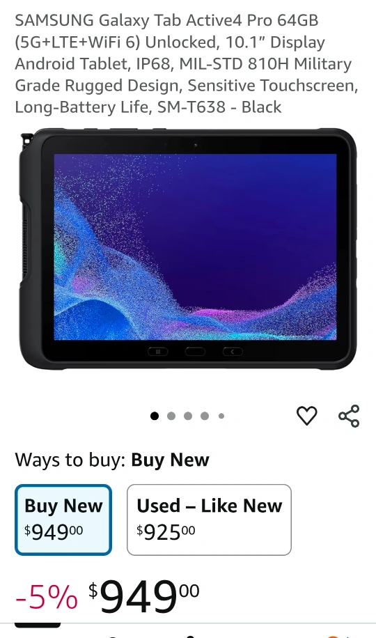 254Samsung galaxy tab Active 4 pro 5g cellular + wifi, 64gb 4gb ram, with 2 Case, type c cable only, Display size 10.1 inch, Android Tablet,Greade Rugged Design sensitive touchscreen, Battery health very good more than 10 hours u can use, this tablet is best for your work, restaurant, school, watch YouTube videos cartoons,play games, original price $999 . If anyone interest knock me will send you number n this address parking place we can meet: 415 Danforth Rd, Scarborough, ON M1L 2X8 Only cash thanks.