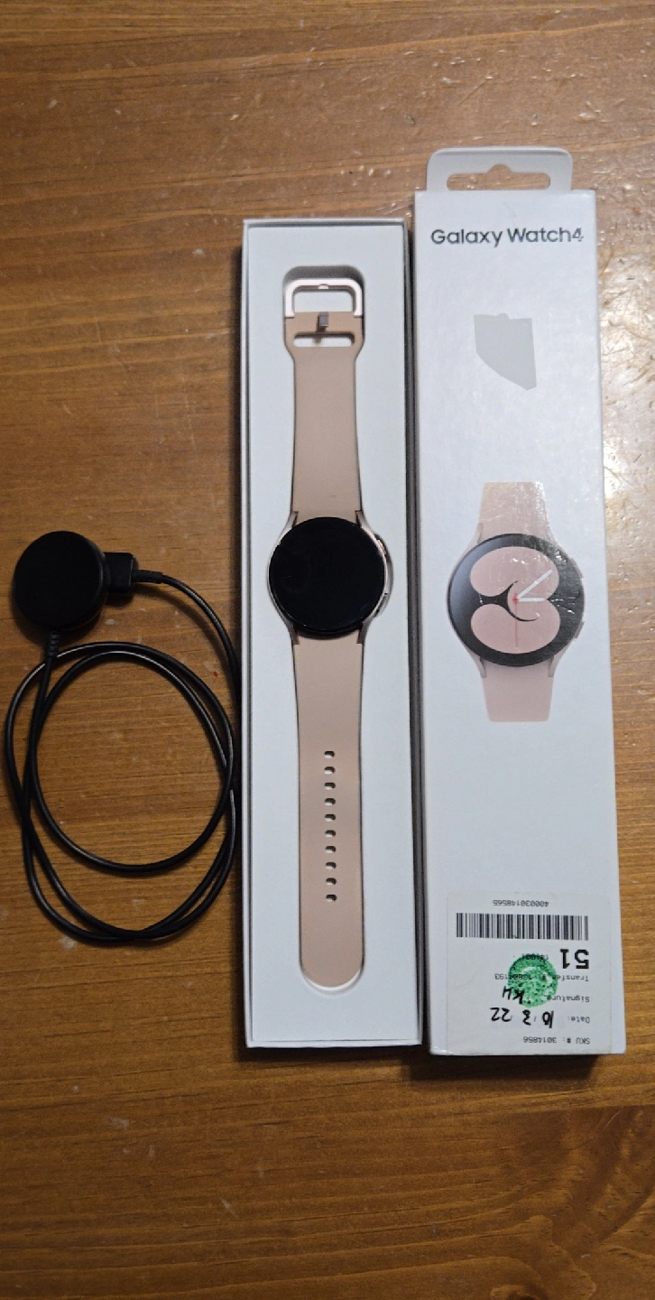 60Selling a Samsung Galaxy Watch4 in pink gold! It's in great condition and comes with the original box and charger. The watch is a 40mm model. Feel free to ask any questions!