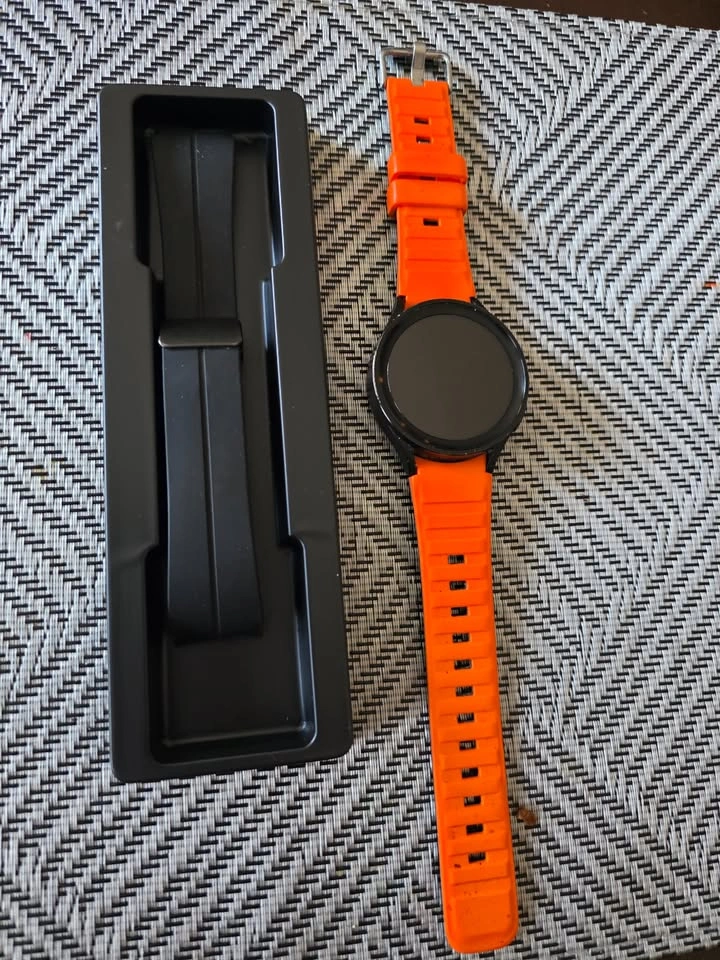 The watch is in good condition with minor case scratches from normal wear and tear. It comes with its original armband and the orange one shown in the pictures. It features a 1.4-inch AMOLED display in a titanium case with a sapphire crystal screen. The screen itself has no scratches. The battery lasts more than 24 hours with almost all sensors on. Item is located in Cochrane. Pick up only.