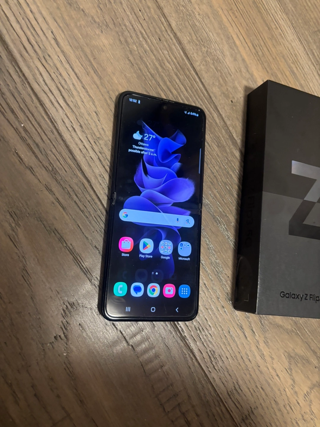 10Selling my Samsung Galaxy Z Flip 3 5G, and it's in excellent condition! It comes with the original box.