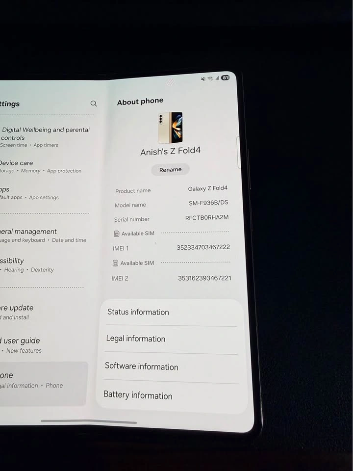 Selling my Samsung Z Fold 4 because I upgraded. The phone is in great shape and works perfectly — no cracks, no dents, no functional problems. Includes the Samsung S Pen Fold Edition with the official holder case. I hardly used this phone. Sitting in Drawer from few months. ✅ Key Features: • 256GB storage • Large foldable inner display — great for multitasking, videos, and productivity • Comes with the Fold Edition S Pen • Smooth performance, fast charging, premium build • Battery health is still excellent • Unlocked – works with any carrier 📦 Included in the Bundle: • Samsung Galaxy Z Fold 4 (256GB) • Samsung S Pen Fold Edition • S Pen holder case (as shown) 🔍 Condition Details: • Screens look great (see photos) • Hinge works smoothly • No issues with touch or display • Updated software + factory reset ready for new owner