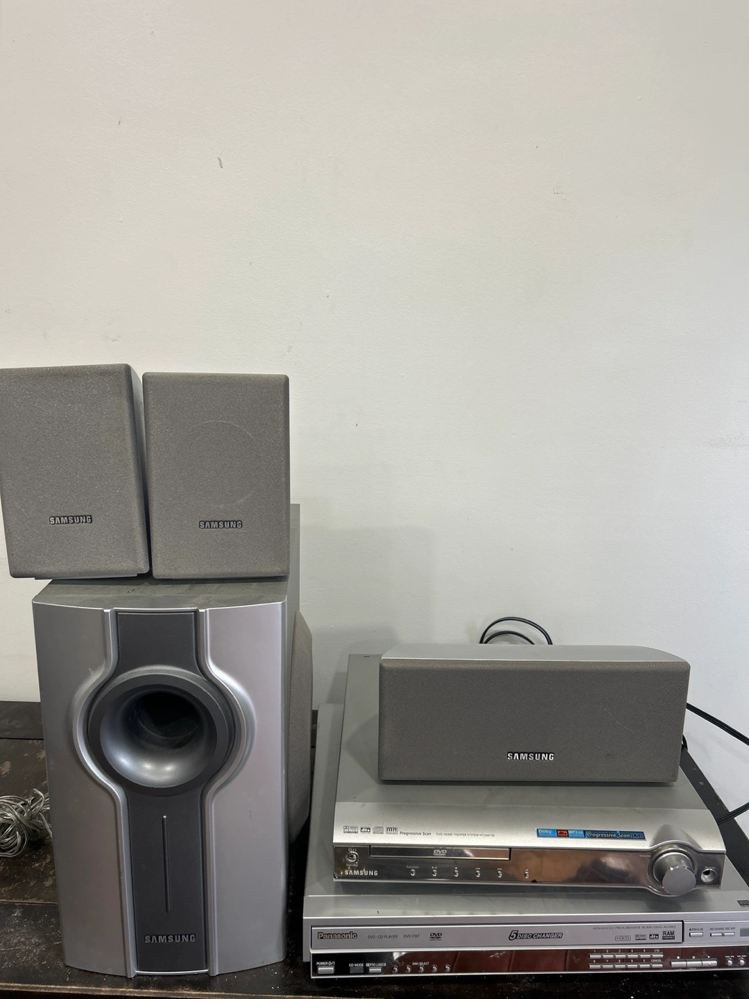 114Selling a Samsung home theatre system. Includes a subwoofer, multiple speakers, and a Panasonic DVD/CD player (DVD-F87). Great for setting up a home entertainment system!