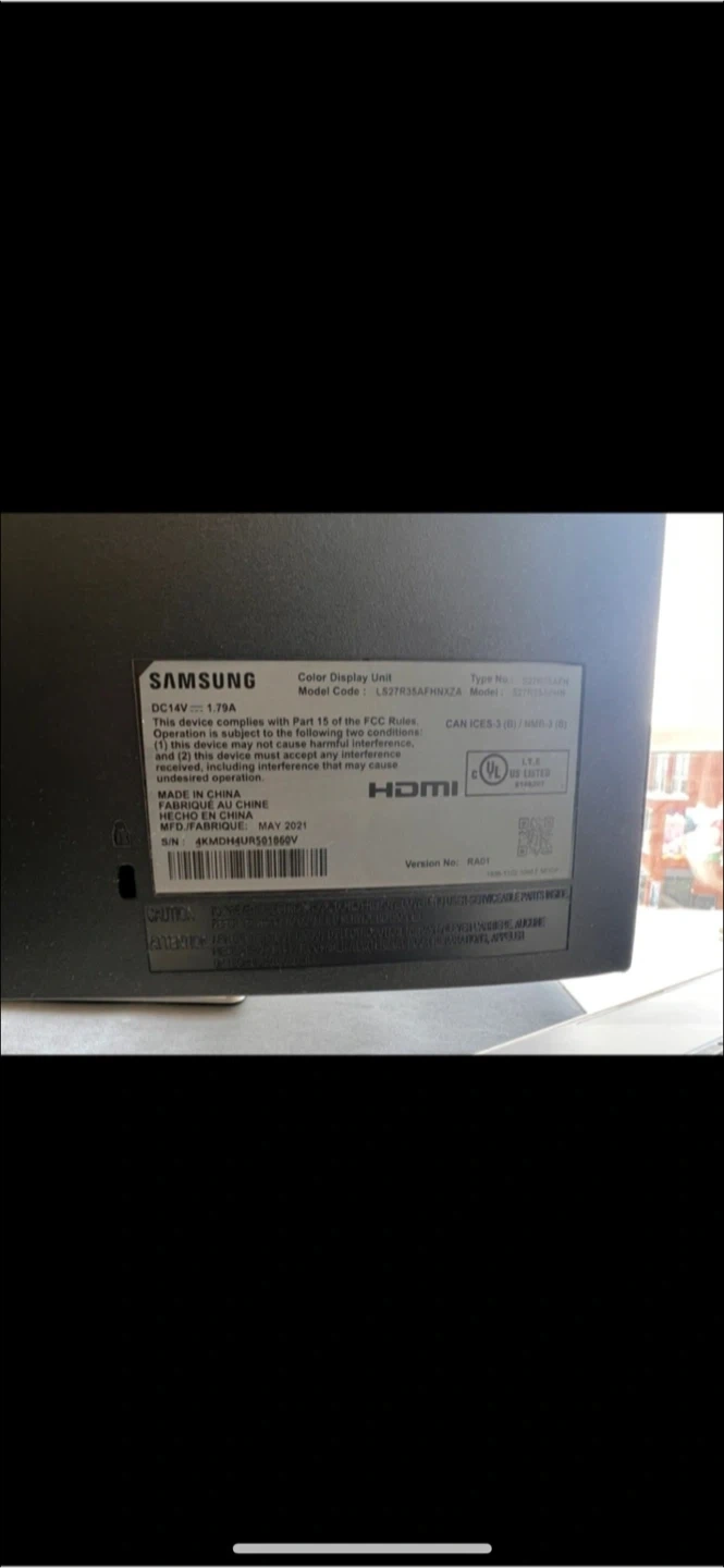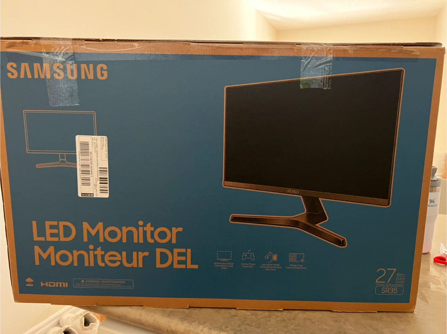 Selling a practically brand new, + box Samsung 27-inch LED Monitor! It's the LS27R35A model, perfect for home or office use. It brings all of its original components. It features a 27" display with 1080/60Hz/5MS specs. Selling as I’m moving out of the country. It’s been my WFH partner and I will certainly miss it. Cash only. Thanks!