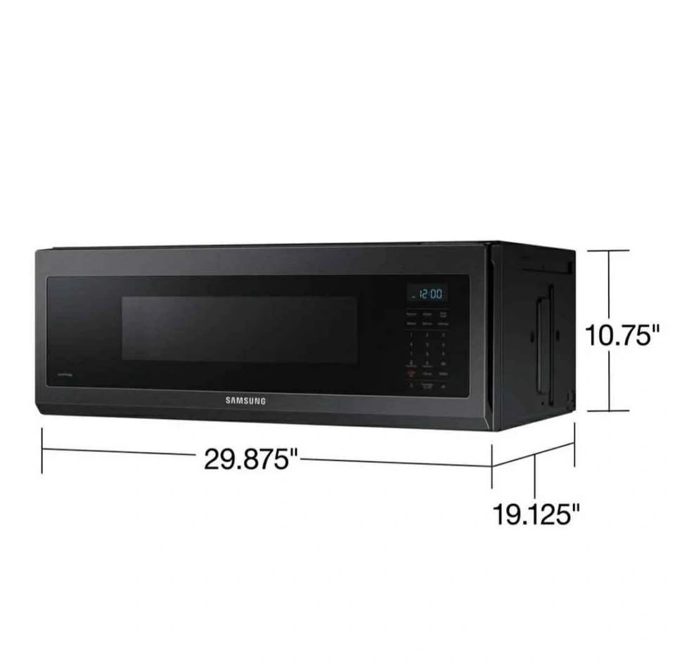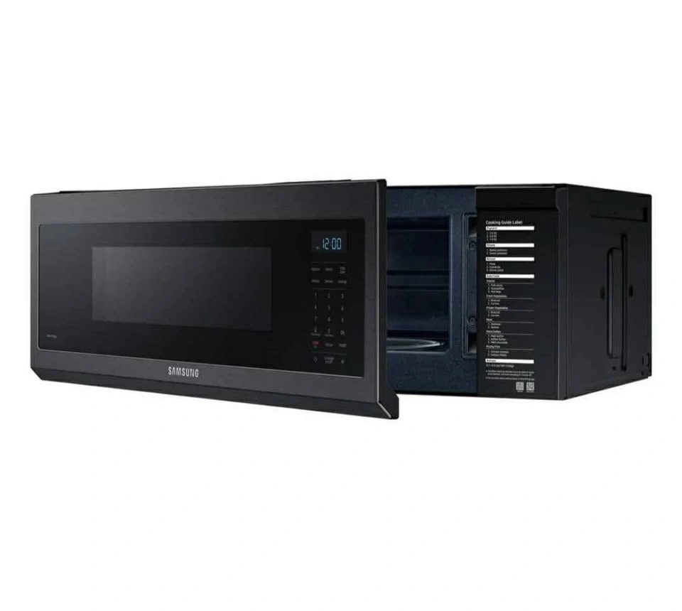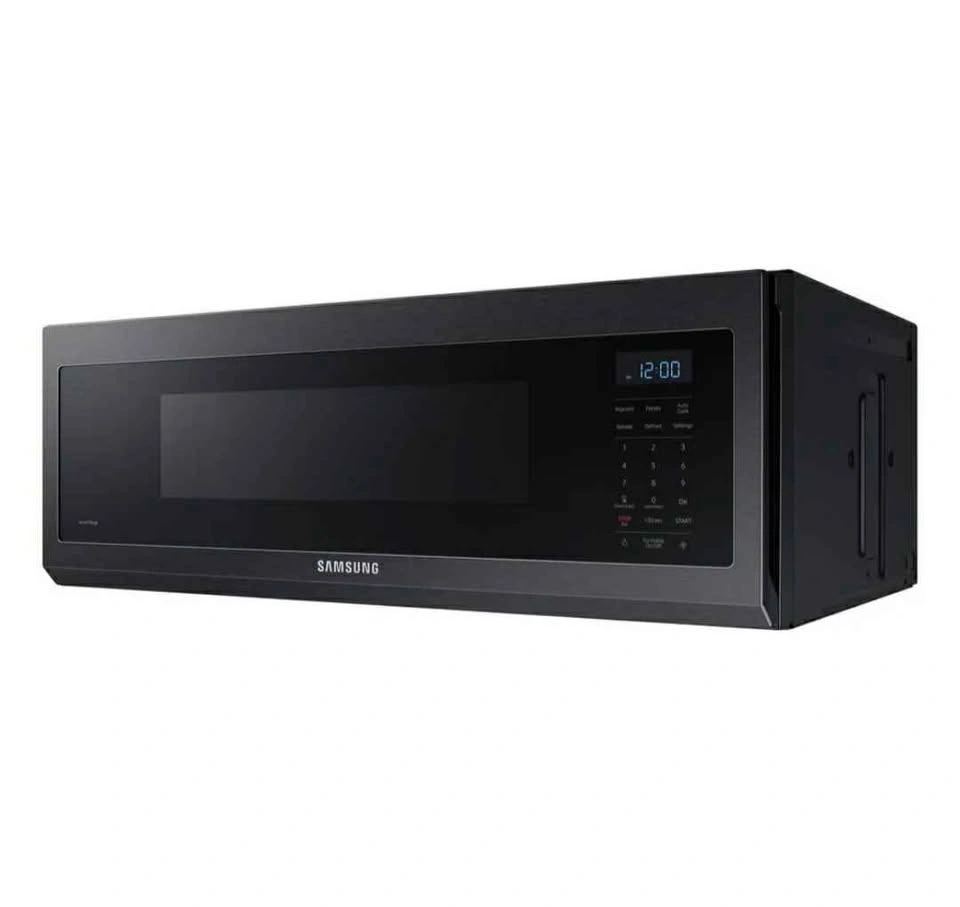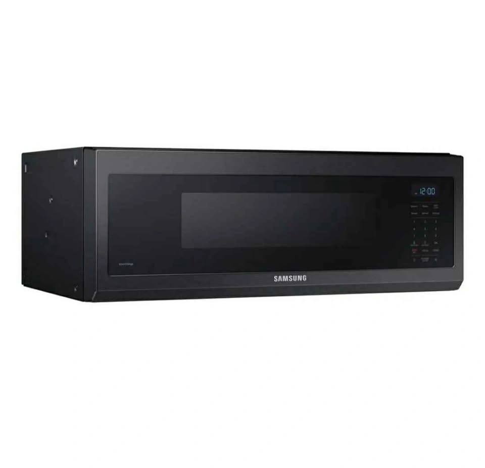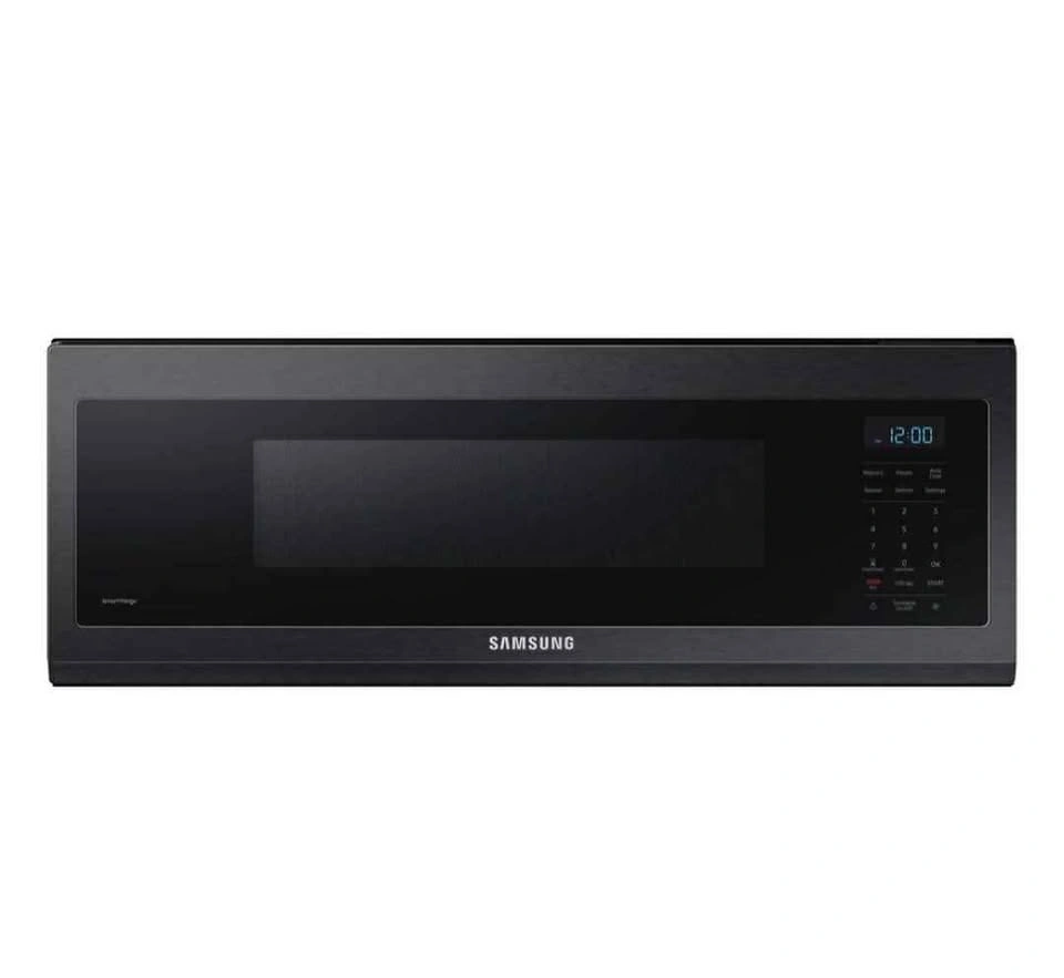 Samsung 1.7 cu. ft. Over-the-Range Microwave w/ Wi-Fi in Fingerprint Resistant Black Stainless Steel BRAND NEW NO BOX $465 MODEL NUMBER ME11A7510DG Free up space above your cooktop with the sleek new Smart SLIM microwave. This combination microwave and vent hood fits in the same space as an under-cabinet hood, but despite its slim size, it has a capacity of 1.1 cubic feet. The SLIM microwave delivers the powerful performance you need with all the technology you love in a slim, space-saving package. Even in its small size, this hood features a powerful 400 CFM ventilation system that quickly eliminates steam and odors that result from cooking. Using a voice assistant with the SmartThings app, you can tell your microwave what you want it to do. The SmartThings app lets you monitor and adjust settings or control ventilation and lighting from anywhere. The ceramic blue interior is easy to clean Fingerprint resistant for a beautiful everyday finish Save time with the impressive 1100-watt output, which allows you to cook quickly and evenly. Larger dishes are also cooked more thoroughly when the microwave is more powerful. Capture more airborne particles such as oil and grease, improving hood performance with this large, double-width grease filter built into the hood. Halogen lighting evenly illuminates the entire cooktop. The microwave cavity has a considerable capacity of 1.1 cu. ft. which can accommodate larger portions. Samsung's SmartThings Cooking service makes meal planning a seamless process. Search, plan, shop, and prepare meals for the week via the SmartThings app on your Family Hub refrigerator or smartphone. SmartThings Cooking recommends personalized recipes based on preferences, shows what's available, and tracks recipe search history so you can plan meals for your family more efficiently. Download the SmartThings app to create shopping lists and add missing ingredients directly to your grocery cart. Available on Android and iOS devices, Wi-Fi connection and Samsung account required. Child-resistant door locks prevent unwanted access and enhance security