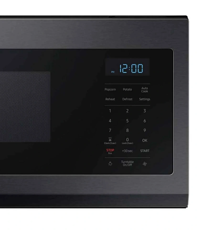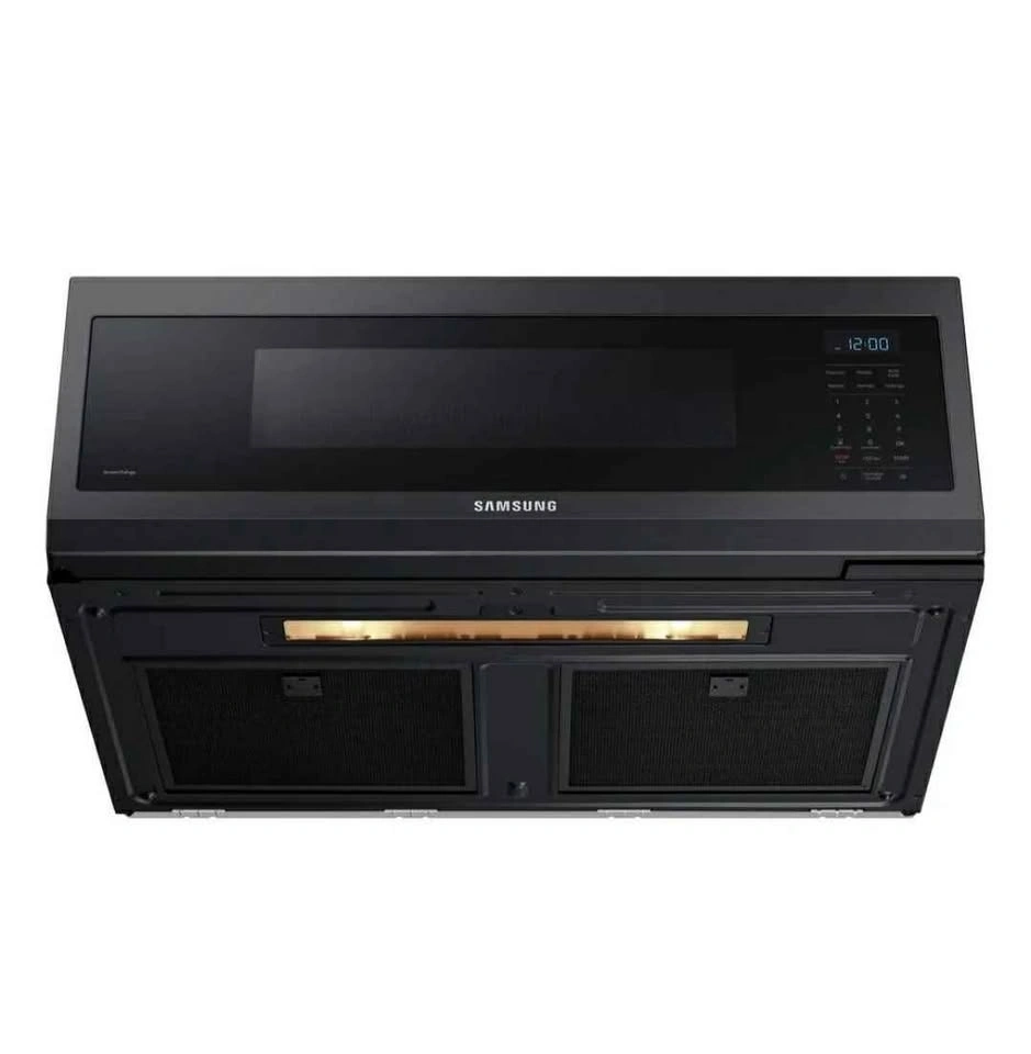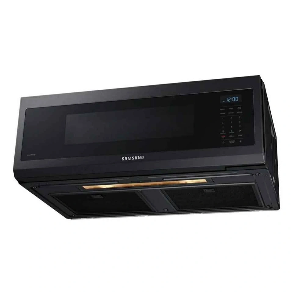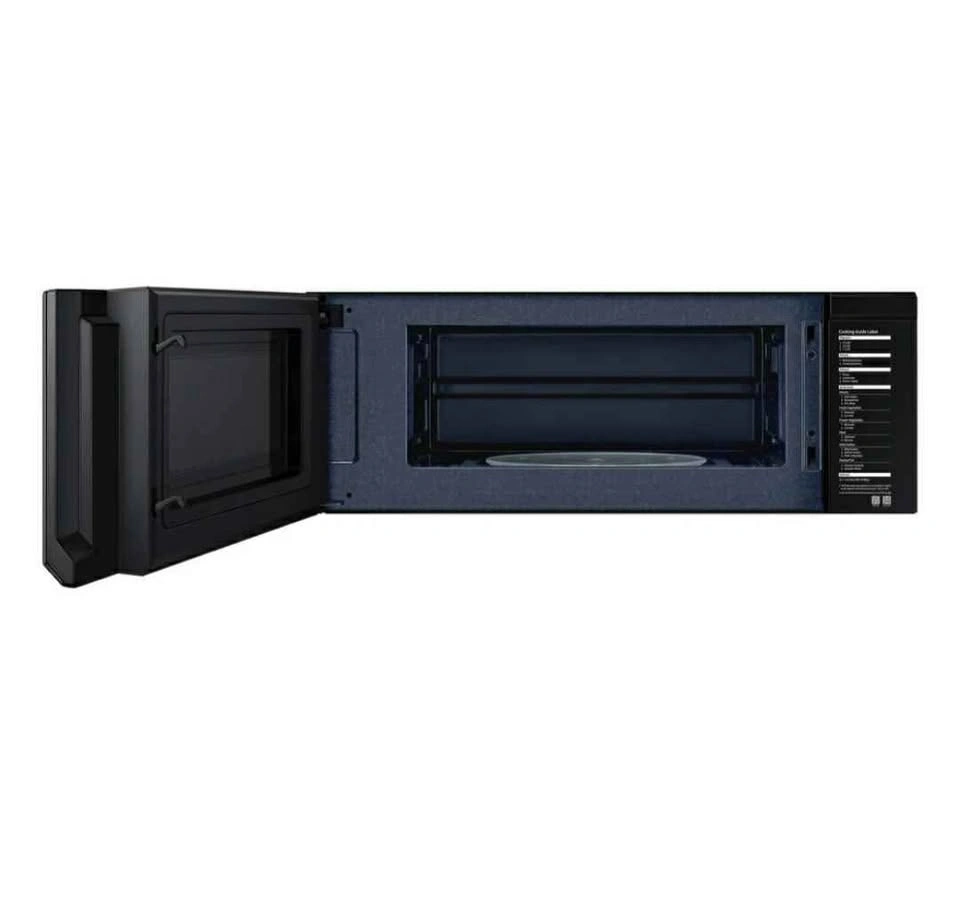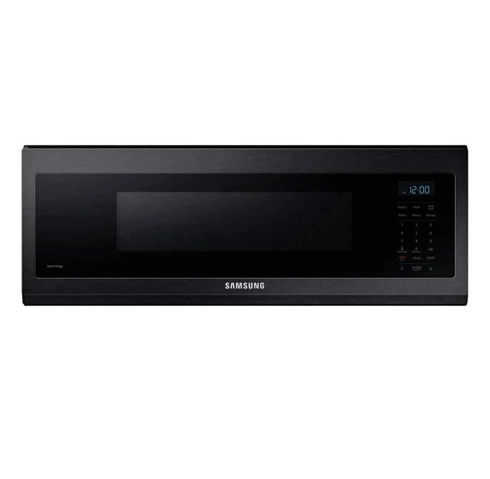 Samsung 1.7 cu. ft. Over-the-Range Microwave w/ Wi-Fi in Fingerprint Resistant Black Stainless Steel BRAND NEW NO BOX $465 MODEL NUMBER ME11A7510DG Free up space above your cooktop with the sleek new Smart SLIM microwave. This combination microwave and vent hood fits in the same space as an under-cabinet hood, but despite its slim size, it has a capacity of 1.1 cubic feet. The SLIM microwave delivers the powerful performance you need with all the technology you love in a slim, space-saving package. Even in its small size, this hood features a powerful 400 CFM ventilation system that quickly eliminates steam and odors that result from cooking. Using a voice assistant with the SmartThings app, you can tell your microwave what you want it to do. The SmartThings app lets you monitor and adjust settings or control ventilation and lighting from anywhere. The ceramic blue interior is easy to clean Fingerprint resistant for a beautiful everyday finish Save time with the impressive 1100-watt output, which allows you to cook quickly and evenly. Larger dishes are also cooked more thoroughly when the microwave is more powerful. Capture more airborne particles such as oil and grease, improving hood performance with this large, double-width grease filter built into the hood. Halogen lighting evenly illuminates the entire cooktop. The microwave cavity has a considerable capacity of 1.1 cu. ft. which can accommodate larger portions. Samsung's SmartThings Cooking service makes meal planning a seamless process. Search, plan, shop, and prepare meals for the week via the SmartThings app on your Family Hub refrigerator or smartphone. SmartThings Cooking recommends personalized recipes based on preferences, shows what's available, and tracks recipe search history so you can plan meals for your family more efficiently. Download the SmartThings app to create shopping lists and add missing ingredients directly to your grocery cart. Available on Android and iOS devices, Wi-Fi connection and Samsung account required. Child-resistant door locks prevent unwanted access and enhance security