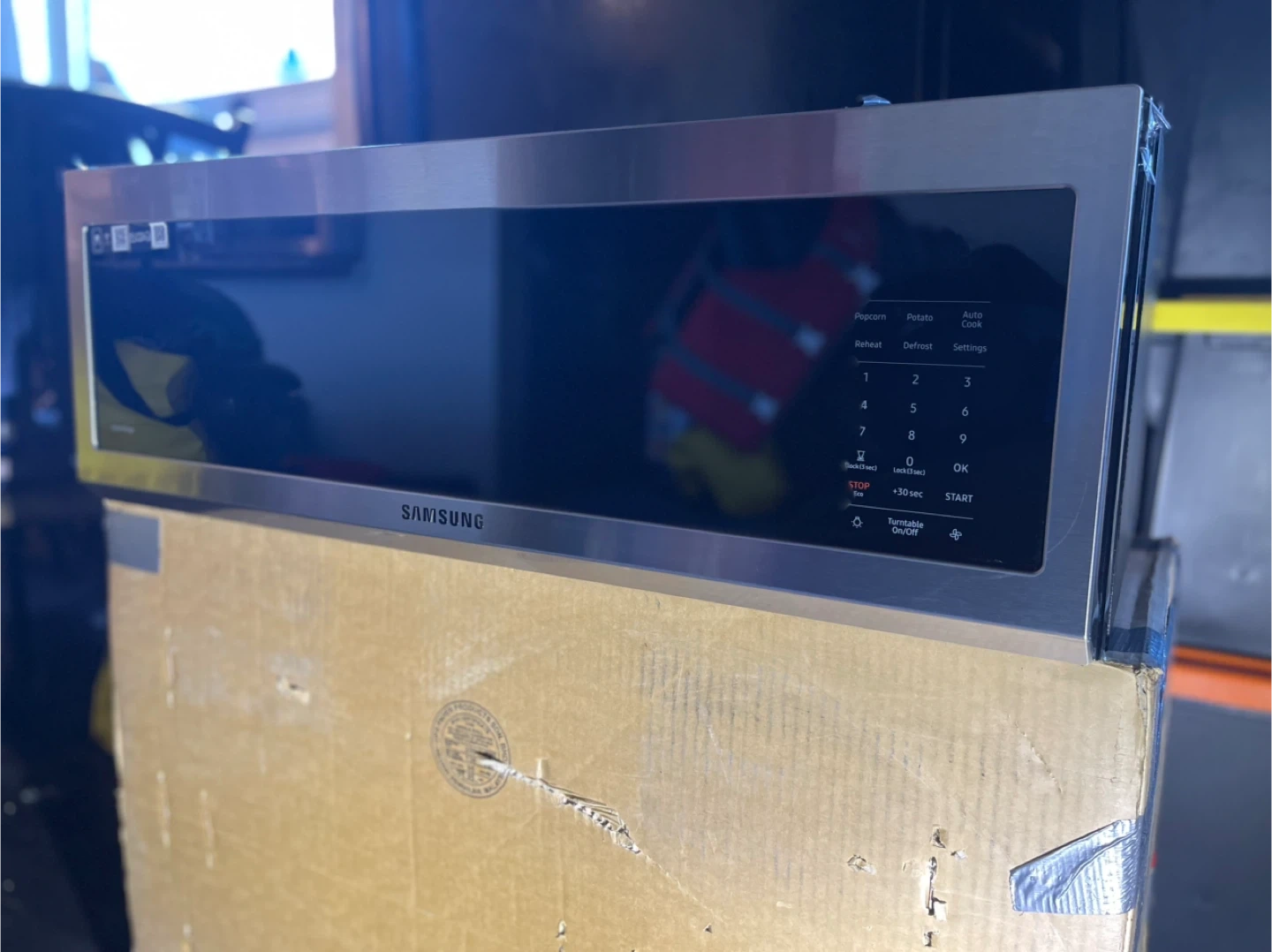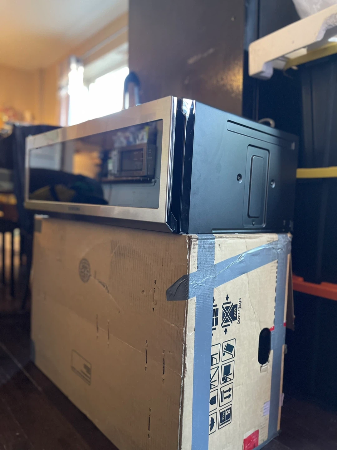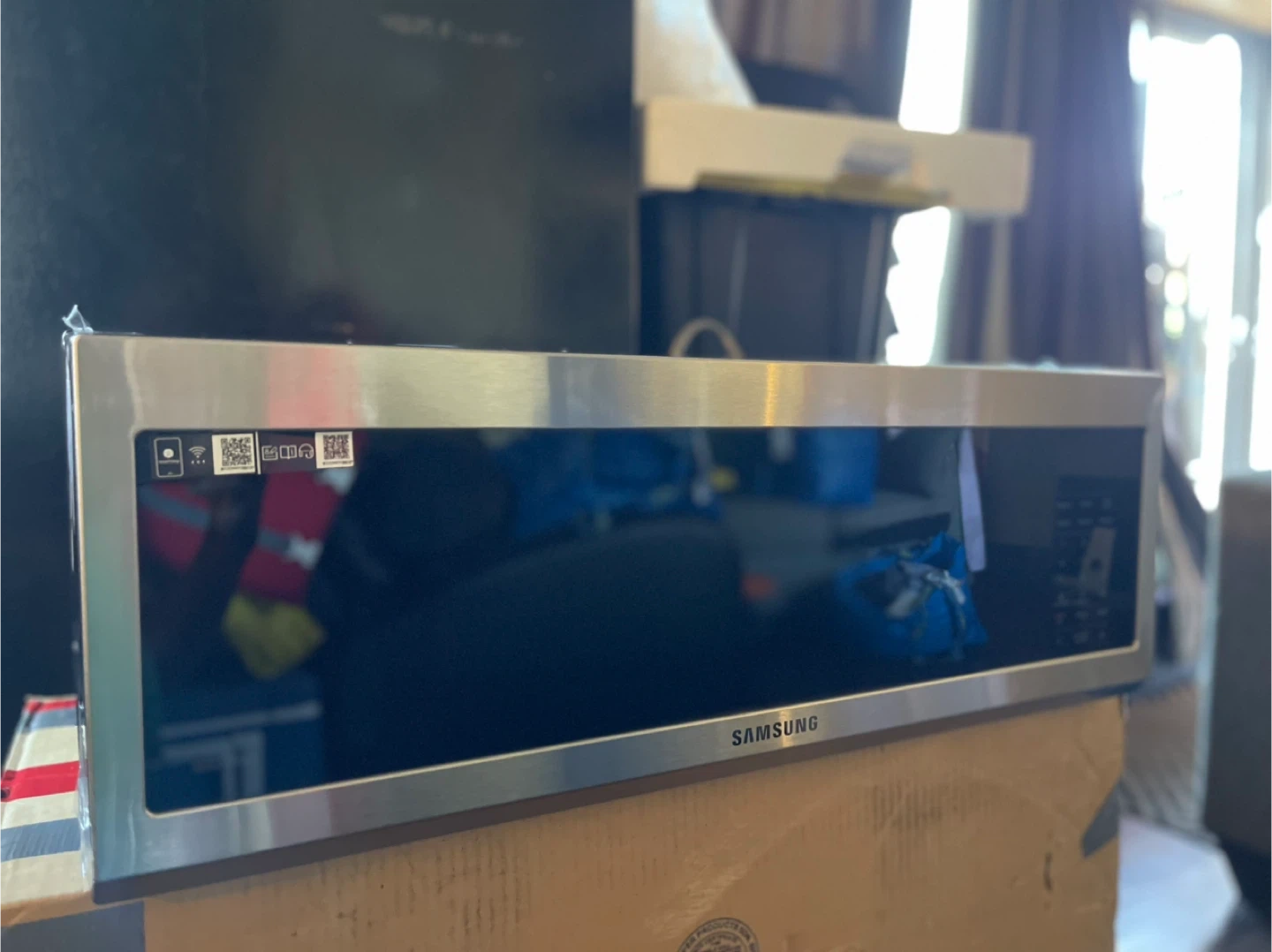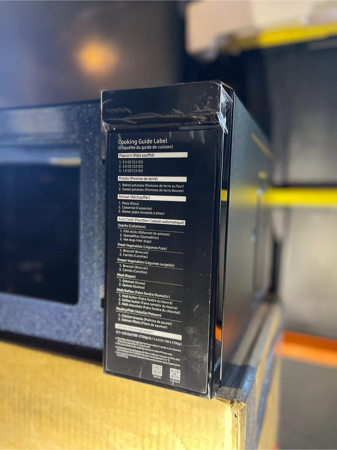 Selling a Samsung over-the-range microwave that's in excellent condition! It comes with its original box and packaging. Great for saving counter space and adding convenience to your kitchen. Features include auto cook settings, reheat, and defrost options. A cooking guide label is included, making meal preparation easy. Ready to go to a new home!