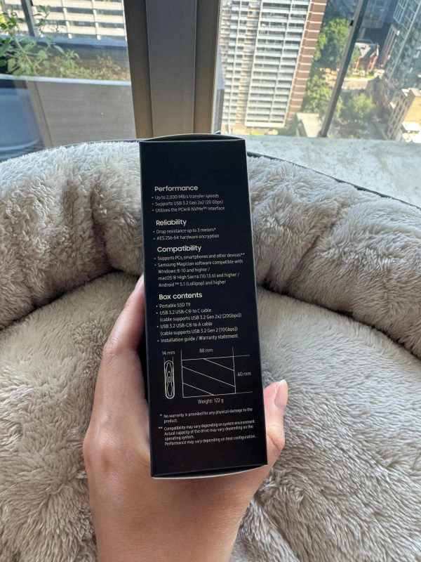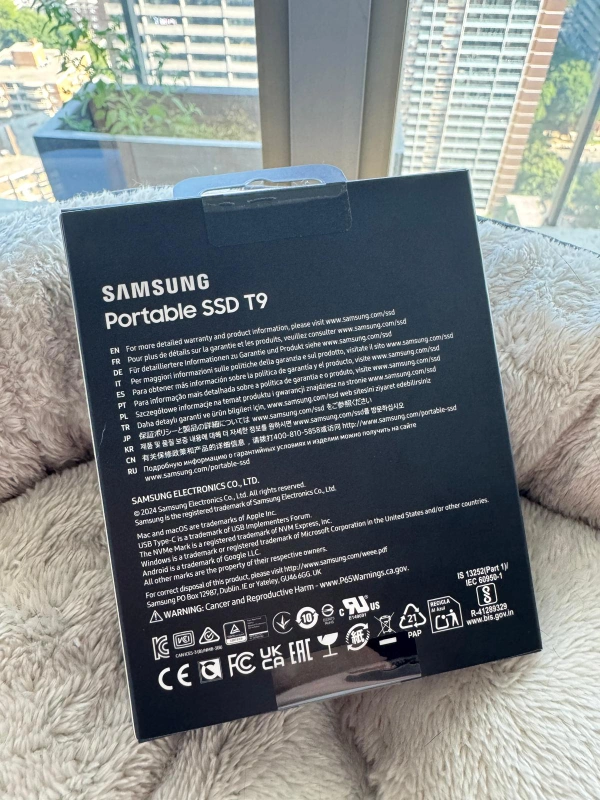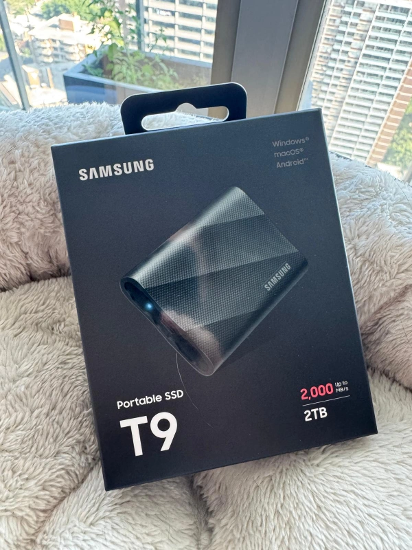 Selling a brand new Samsung Portable SSD T9 with 2TB of storage! It's still sealed in its original box and ready to use. Key features include: - Up to 2,000 MB/s transfer speeds - USB 3.2 Gen 2x2 (20 Gbps) support - Drop resistance up to 3 meters - AES 256-bit hardware encryption Box contents: - USB 3.2 USB-C to C cable -USB 3.2 USB-C to A cable - Installation guide / Safety statement It is compatible with Windows, macOS, and Android devices.