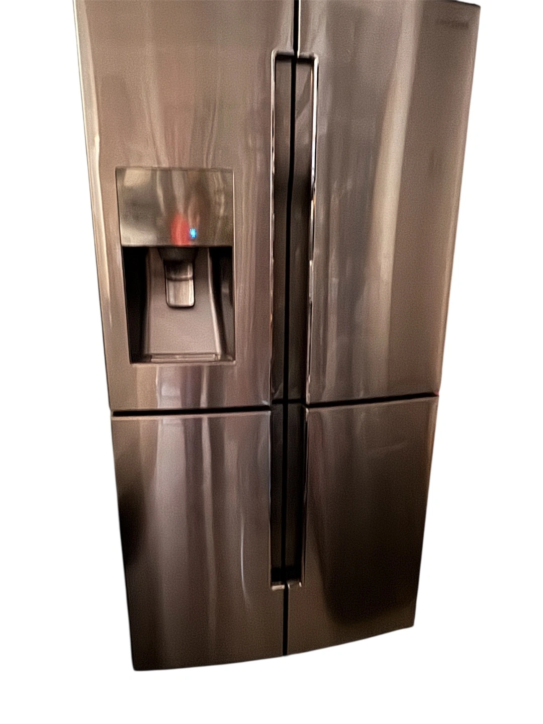 Selling a Samsung French door refrigerator in stainless steel. It's in good condition and ready to keep your groceries fresh! The water and ice dispenser are a great convenience