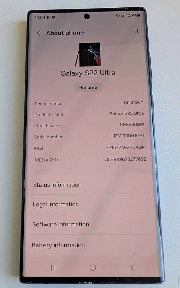 Samsung's flagship premiere phone -- S22 Ultra in great condition. Unlocked!! 128GB of memory. Battery is in great condition. Holds charge and charges fully! Perfect screen, no scratch. Fully functioning Spen. Just a minor dent on the body as I have shown in the last pic.