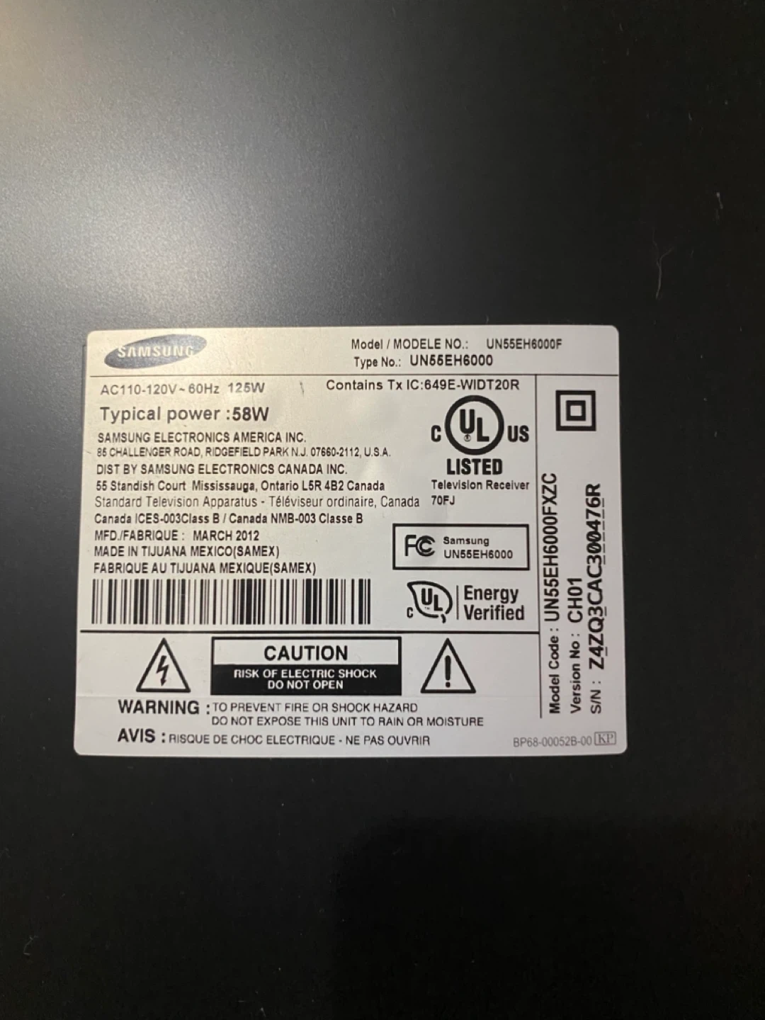 Selling a Samsung 55 inch LED TV, model number UN55EH6000. It comes with a TV mount, model ZL8555. Wall mount can hold up to 155lbs or 80” size TV. Great for streaming, watching your favourite shows , sports or movies!