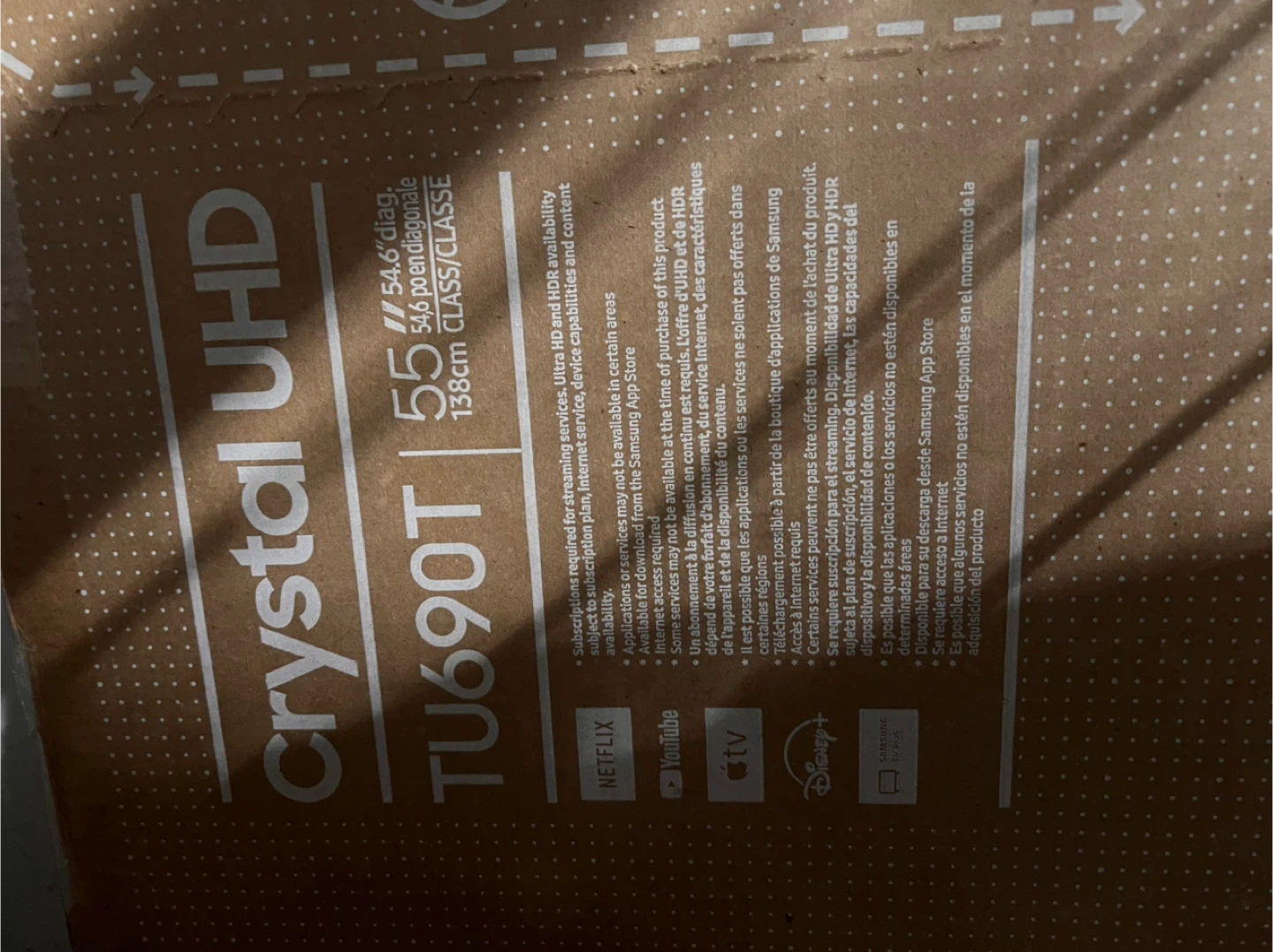 Selling a Samsung 55" 4K UHD TV, model number UN55TU8000FXZC. It's in great shape and ready for a new home! The model code is WA44/UTUTU800/KA/UTU7000K+USSTK1. Comes in its original box with a remote. Cash only pls.